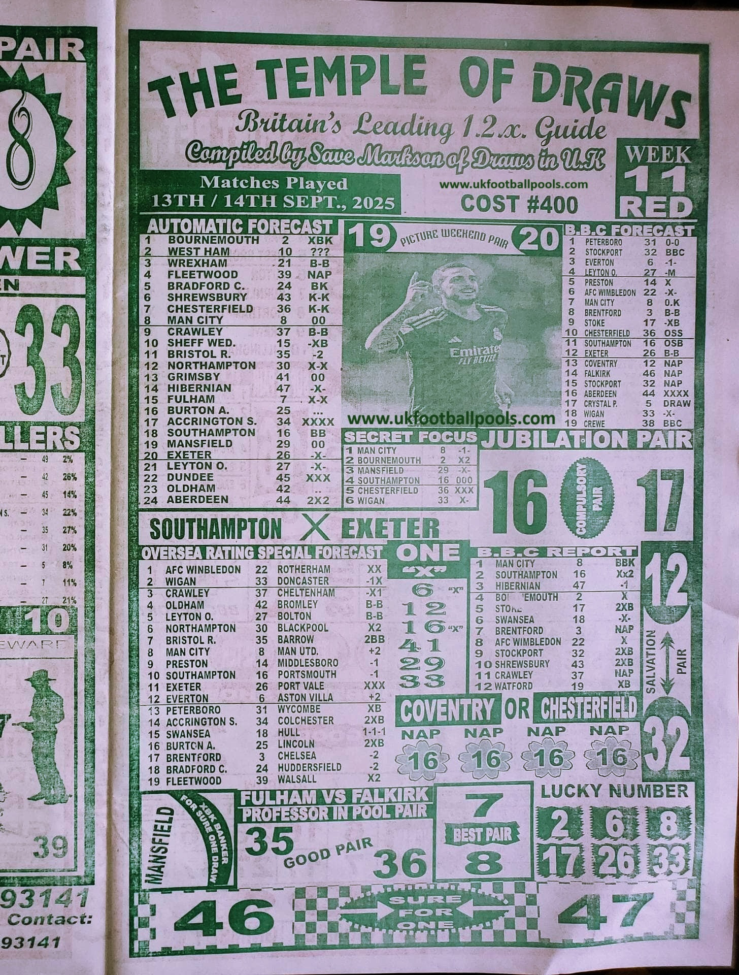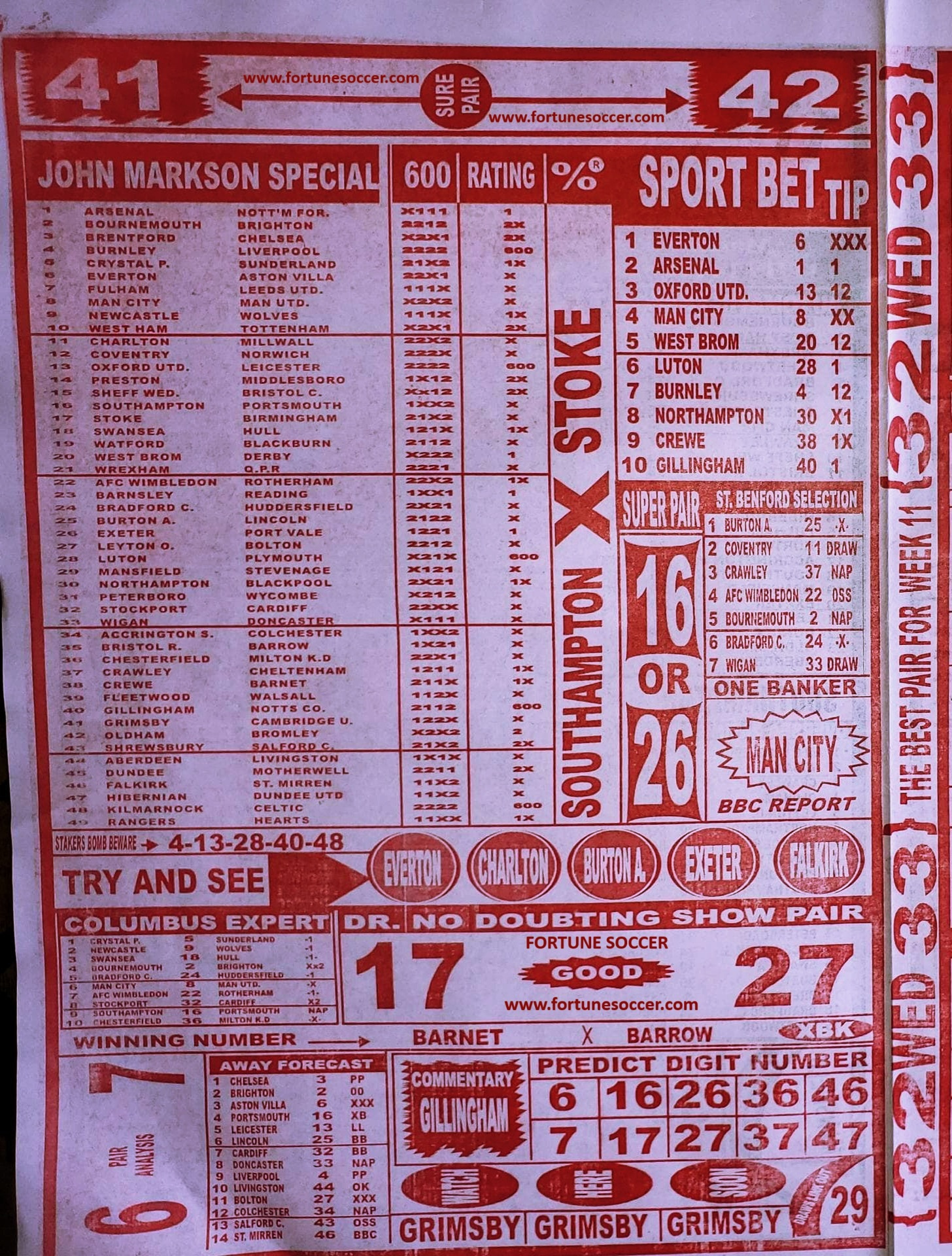 We publish the world’s leading weekend football pool forecasting papers poised to boost your winning chances. Apart from CBK papers we also publish late news papers like Dream International Research and Bigwin Soccer. Week 11 late news pool paper 2025