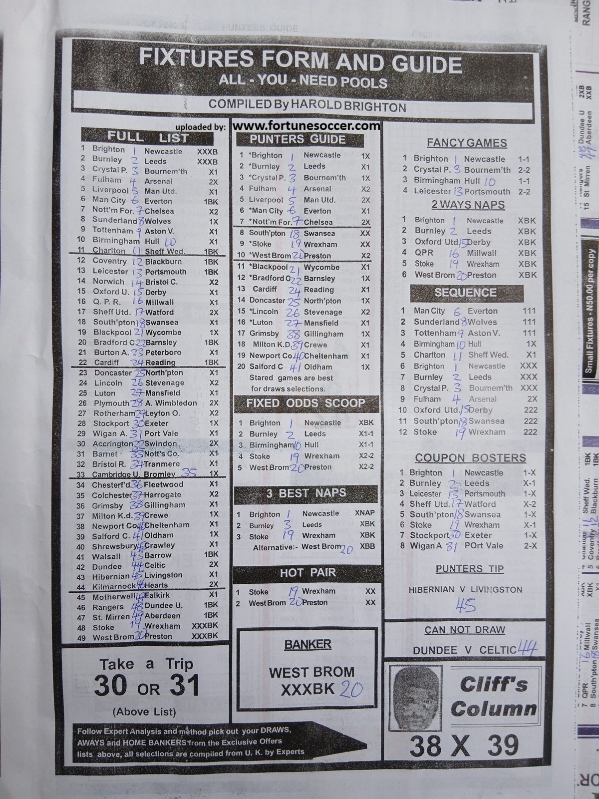 Fortune ‘X’ Matrix is released every ‘Sunday,” visit the online football pools papers store using this LINK to get a copy of Fortune ‘X’ Matrix.