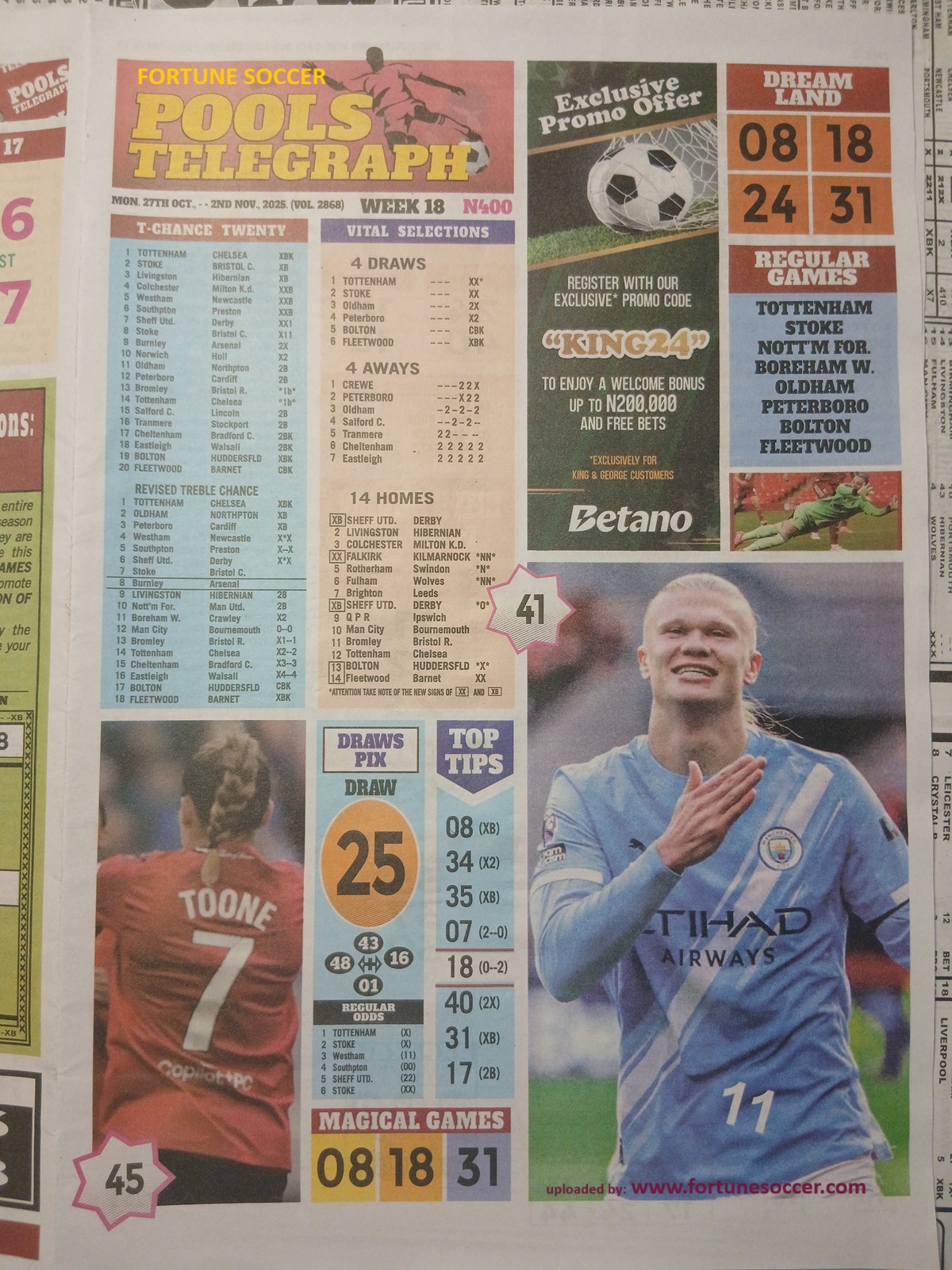 Week 18 late news papers 2025: Here we provide you with the best football pool papers such as Dream International Research (comes with Late News), Fortune ‘X’ Matrix, and Dream International Fixtures.