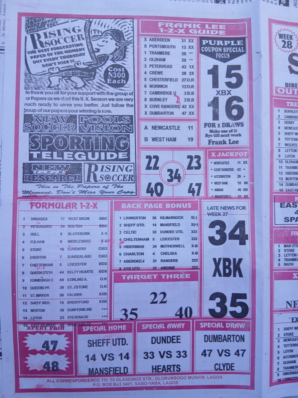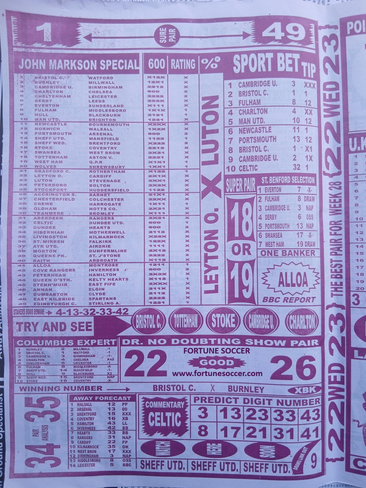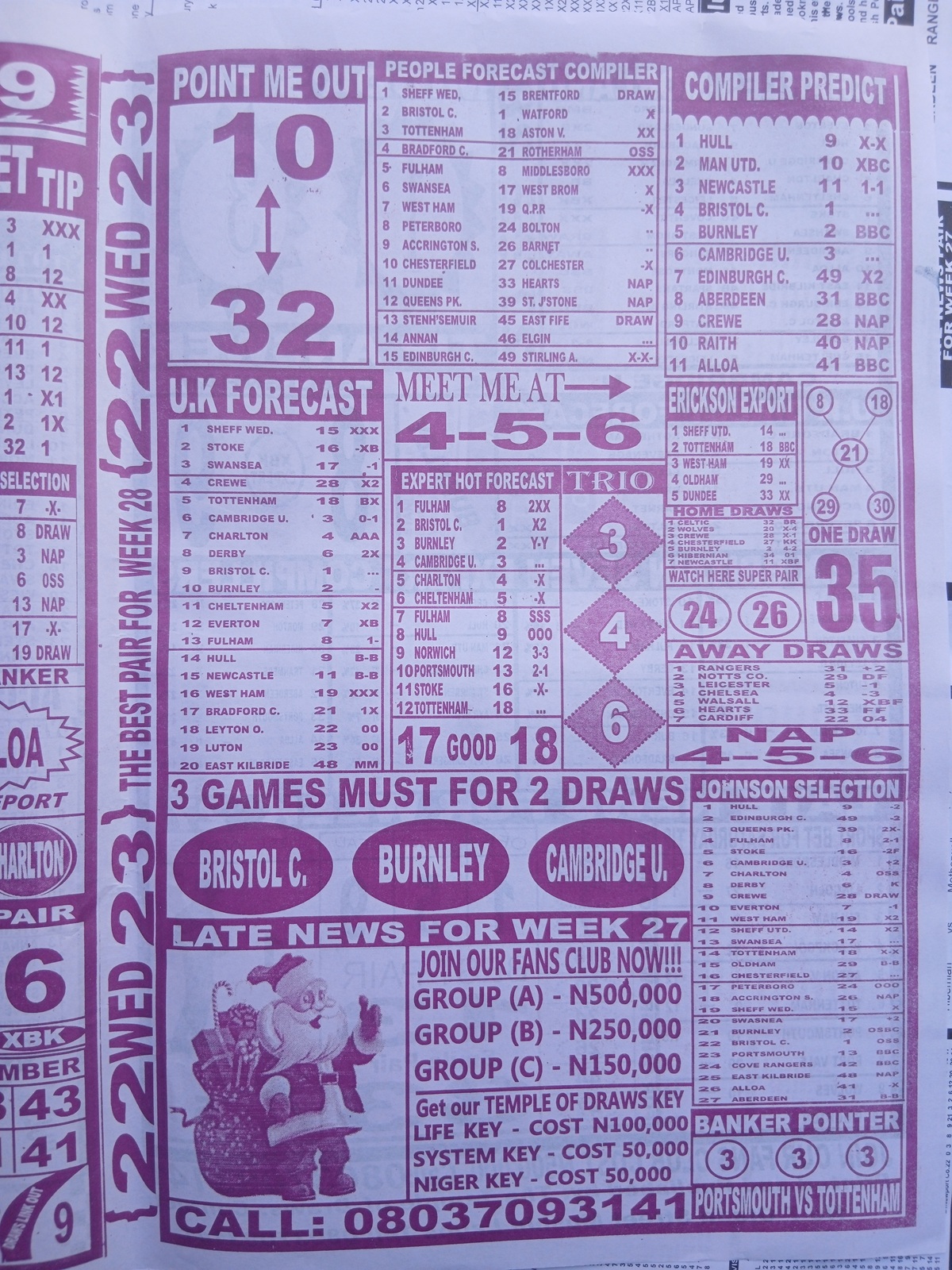 We publish the world’s leading weekend football pool forecasting papers, poised to boost your winning chances. Apart from CBK papers we also publish late news papers like Dream International Research, Bigwin Soccer Temple of Draws, and Mirror Punters Guide. Week 28 late news pool paper 2026