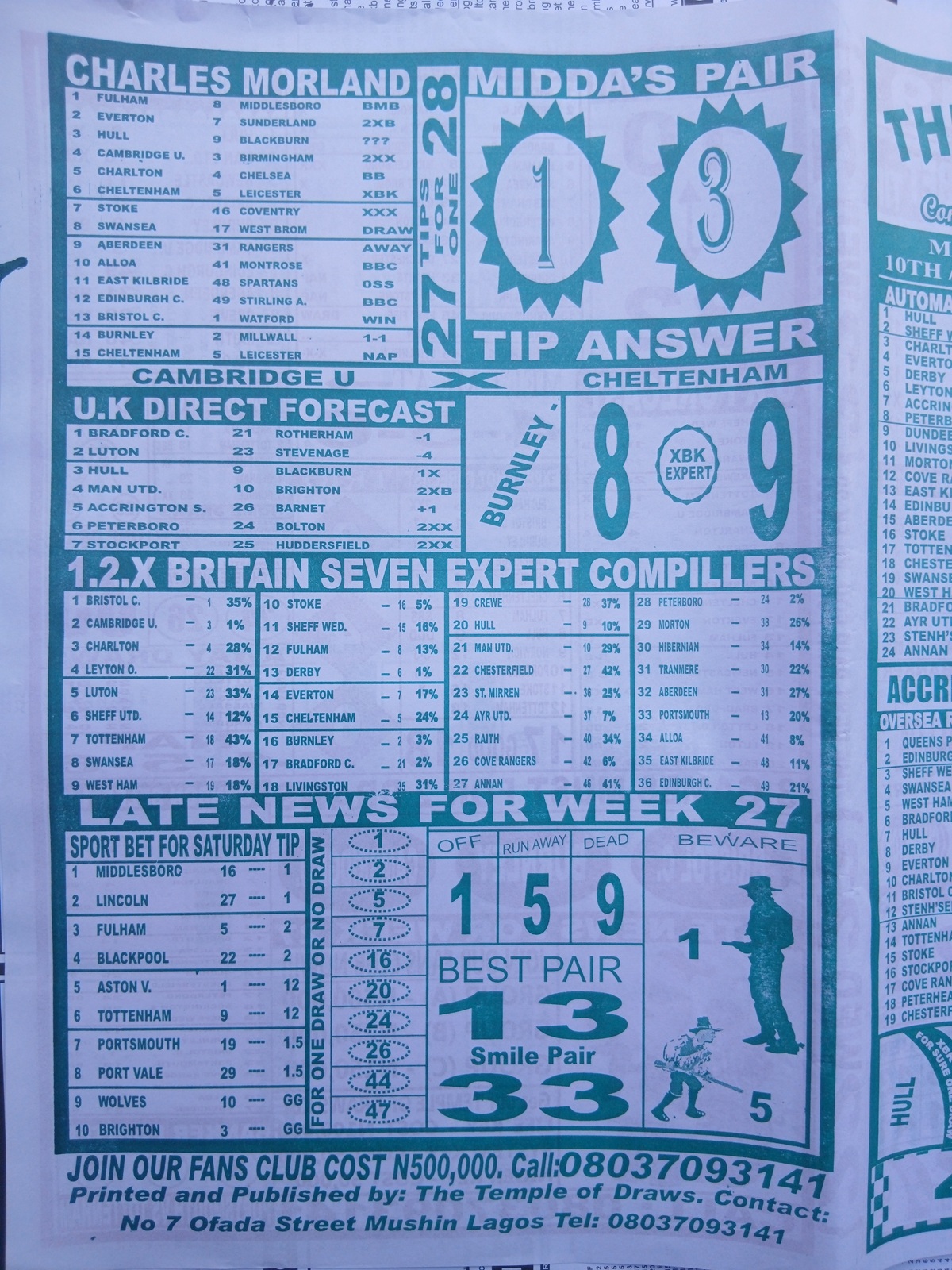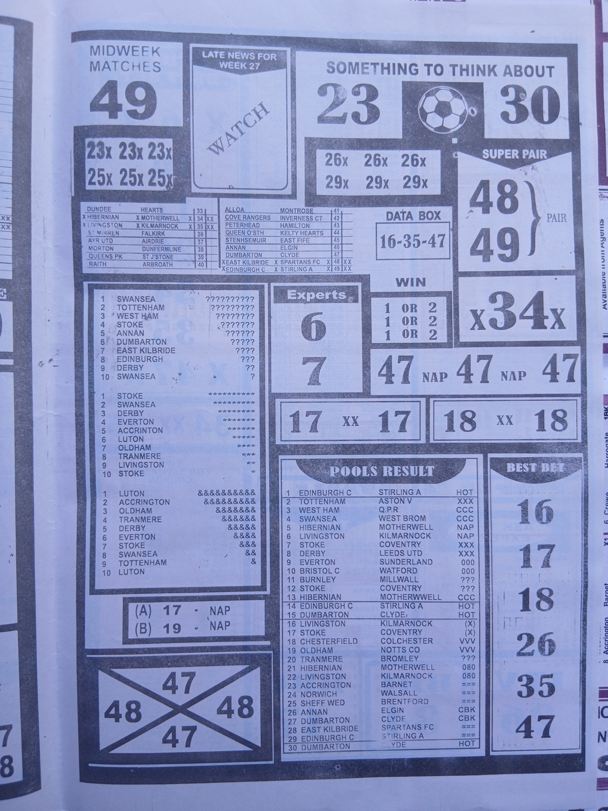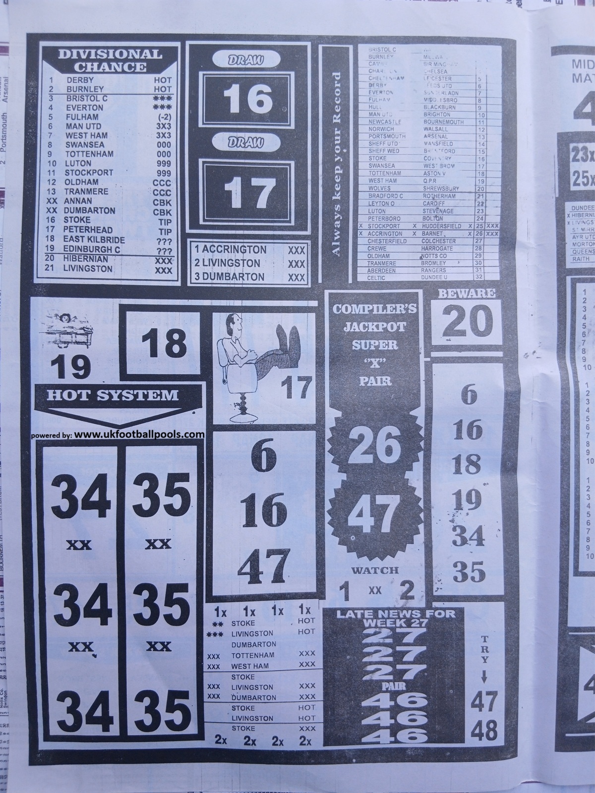 We publish the world’s leading weekend football pool forecasting papers, poised to boost your winning chances. Apart from CBK papers we also publish late news papers like Dream International Research, Bigwin Soccer Temple of Draws, and Mirror Punters Guide. Week 28 late news pool paper 2026