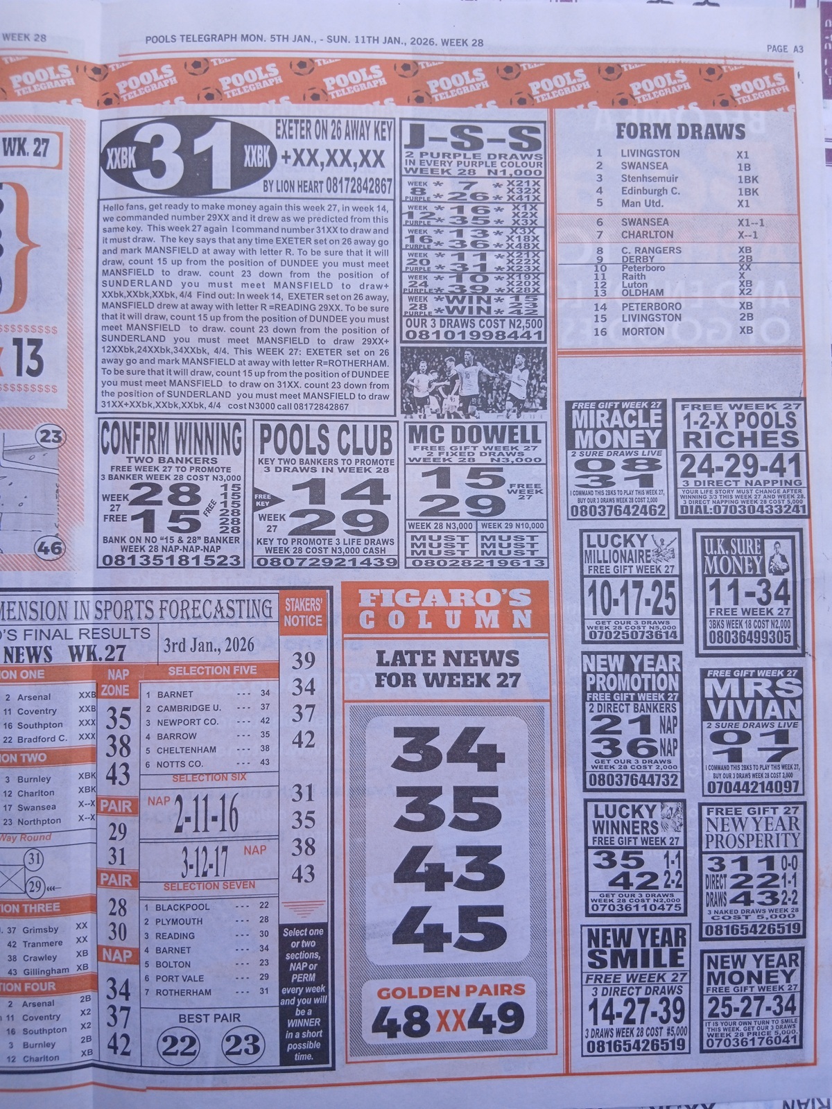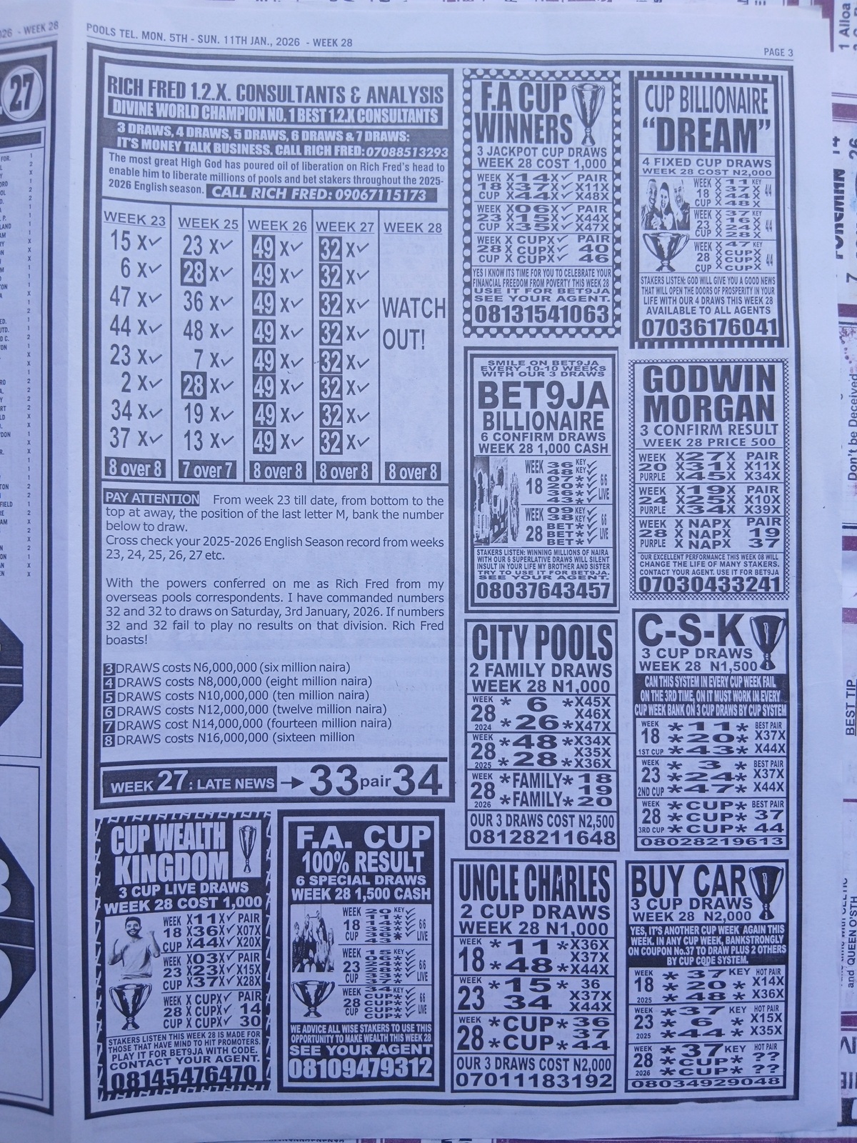 Week 28 late news papers 2026: Here we provide you with the best football pool papers such as Dream International Research (comes with Late News), Fortune ‘X’ Matrix, and Dream International Fixtures.