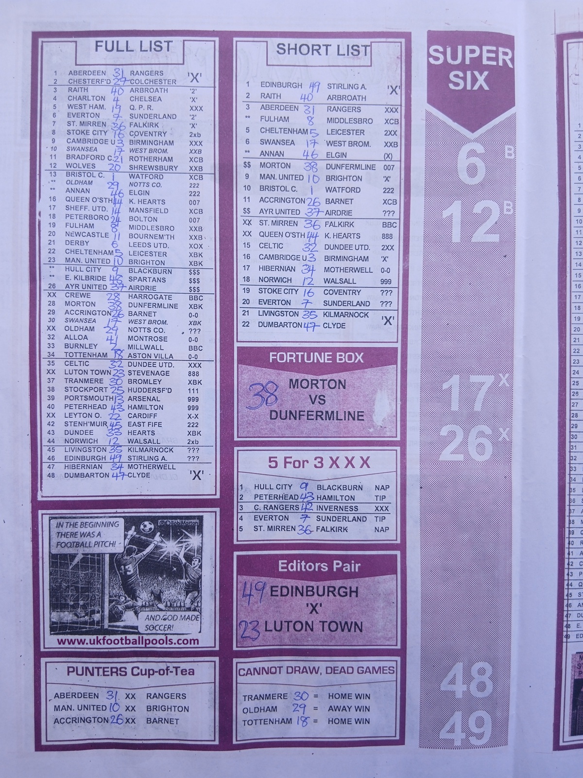 RSK Pools Papers is one of the best football pool fortune papers in the world. These papers are the best in pool forecasting. They include Soccer ‘X’ Research, Capital International, and Bob Morton.