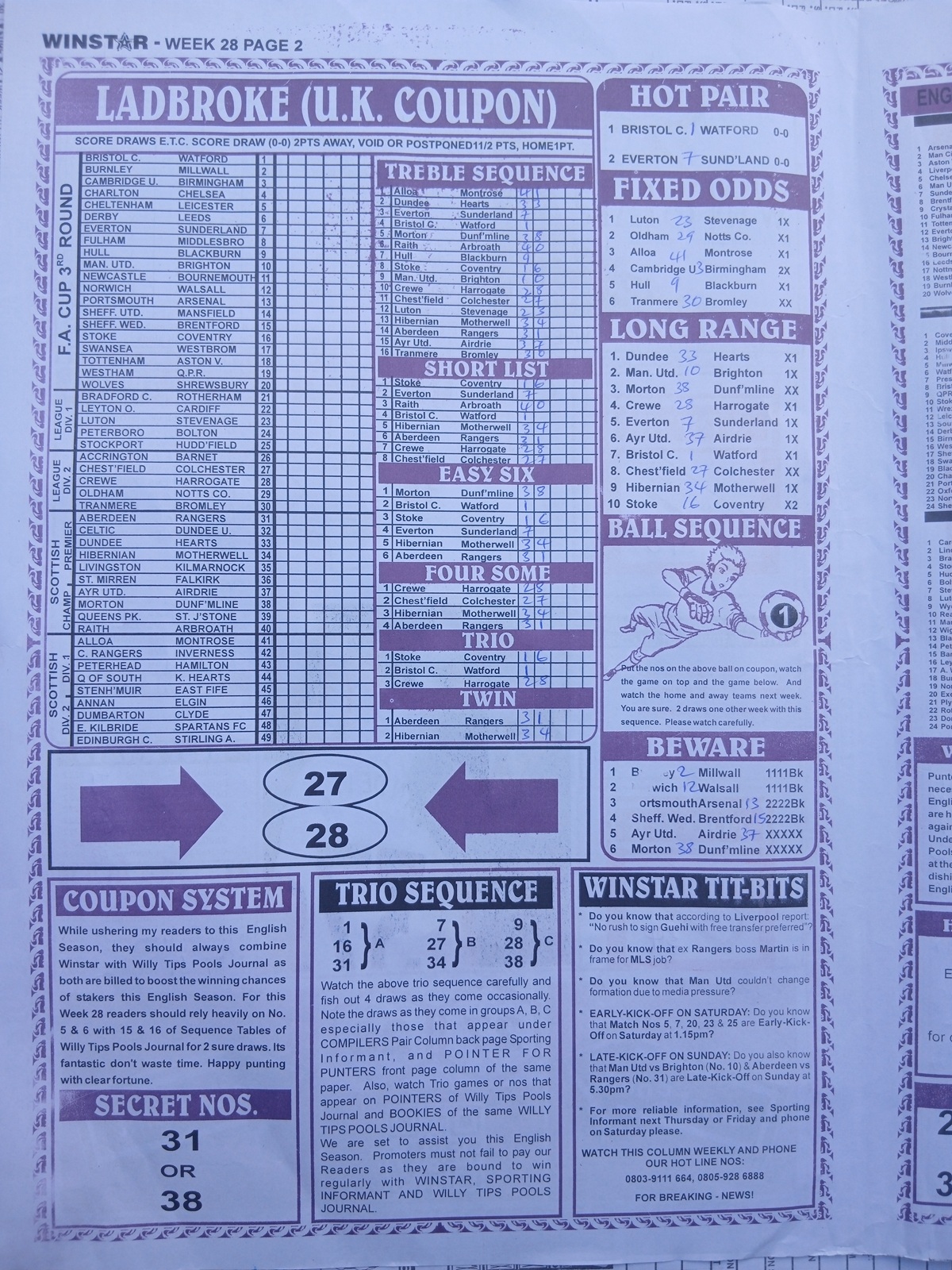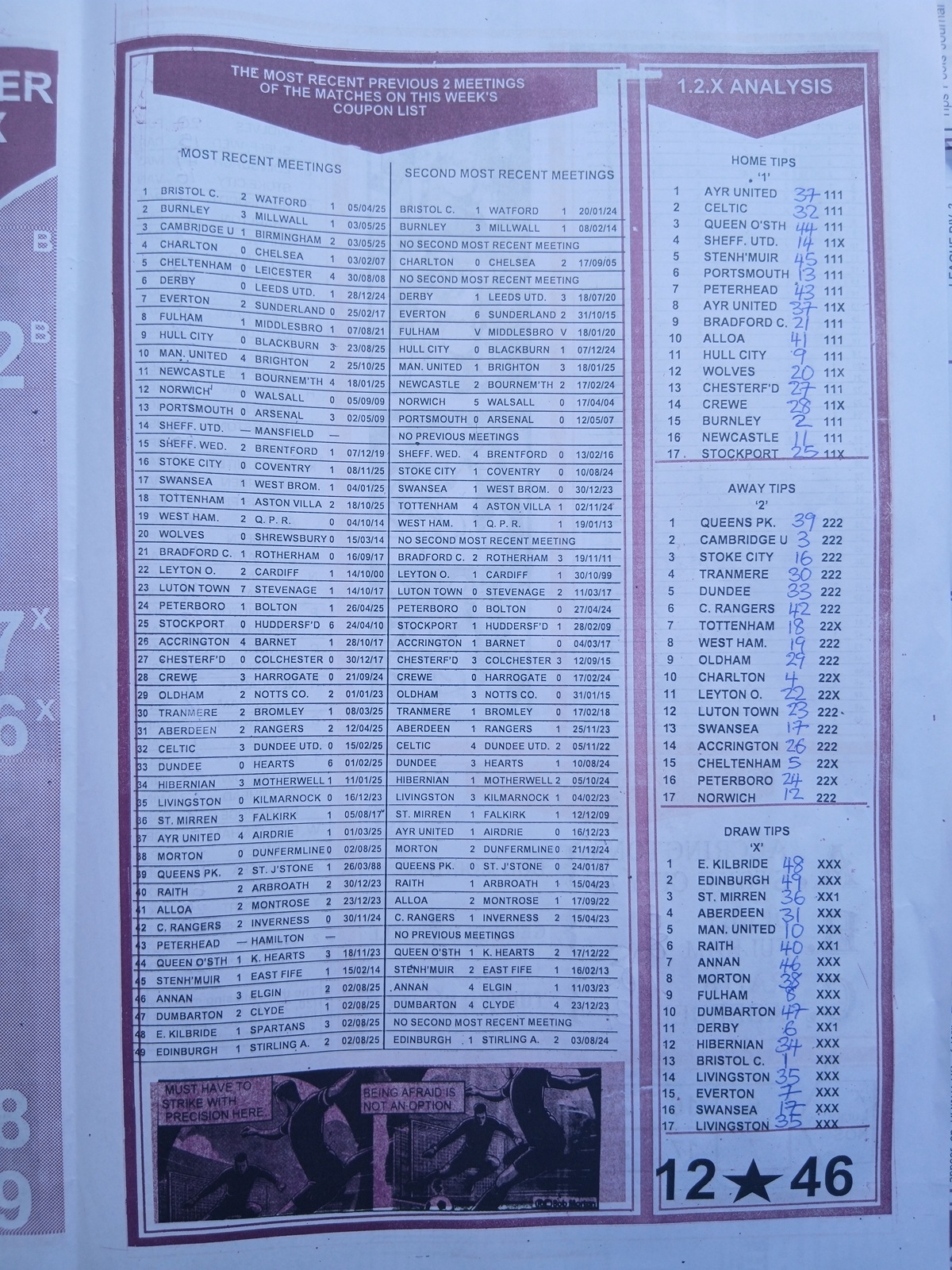 SPECIAL ADVANCE AND RIGHT ON FOOTBALL FIXTURES