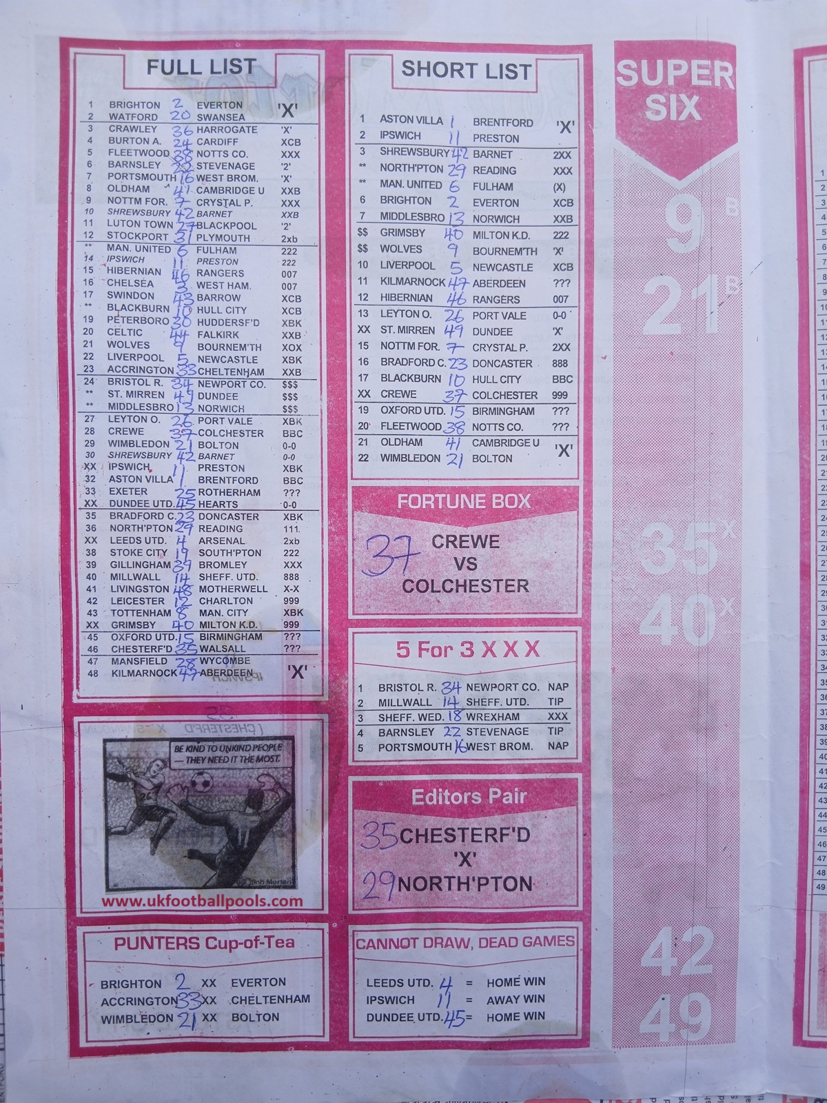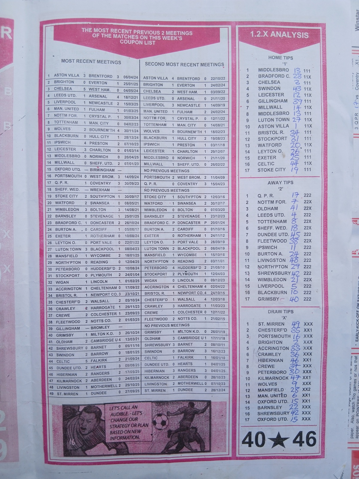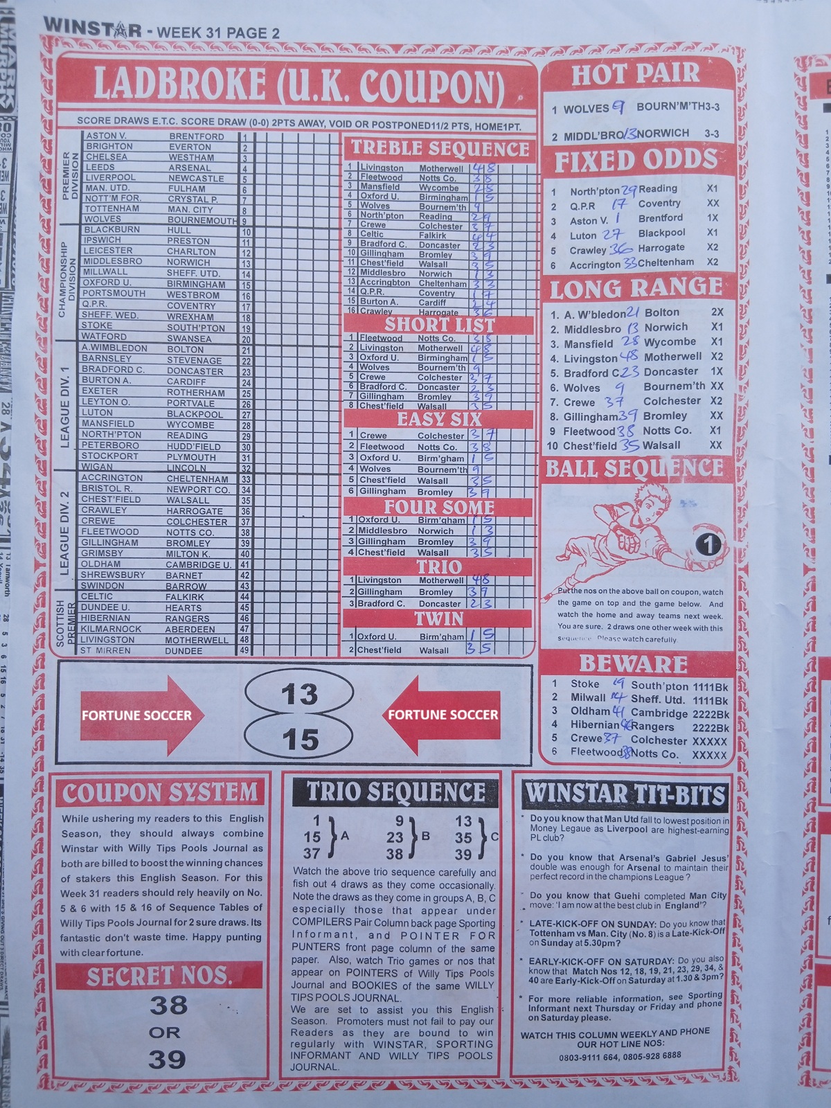 SPECIAL ADVANCE AND RIGHT ON FOOTBALL FIXTURES