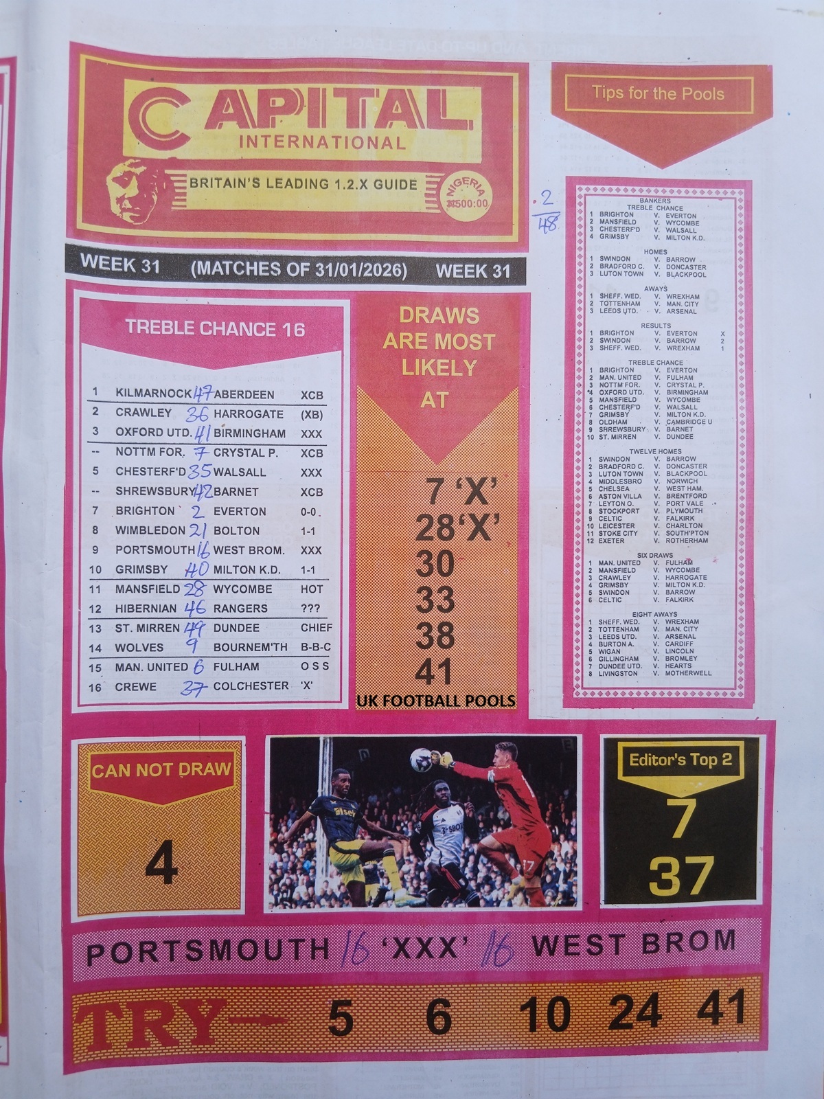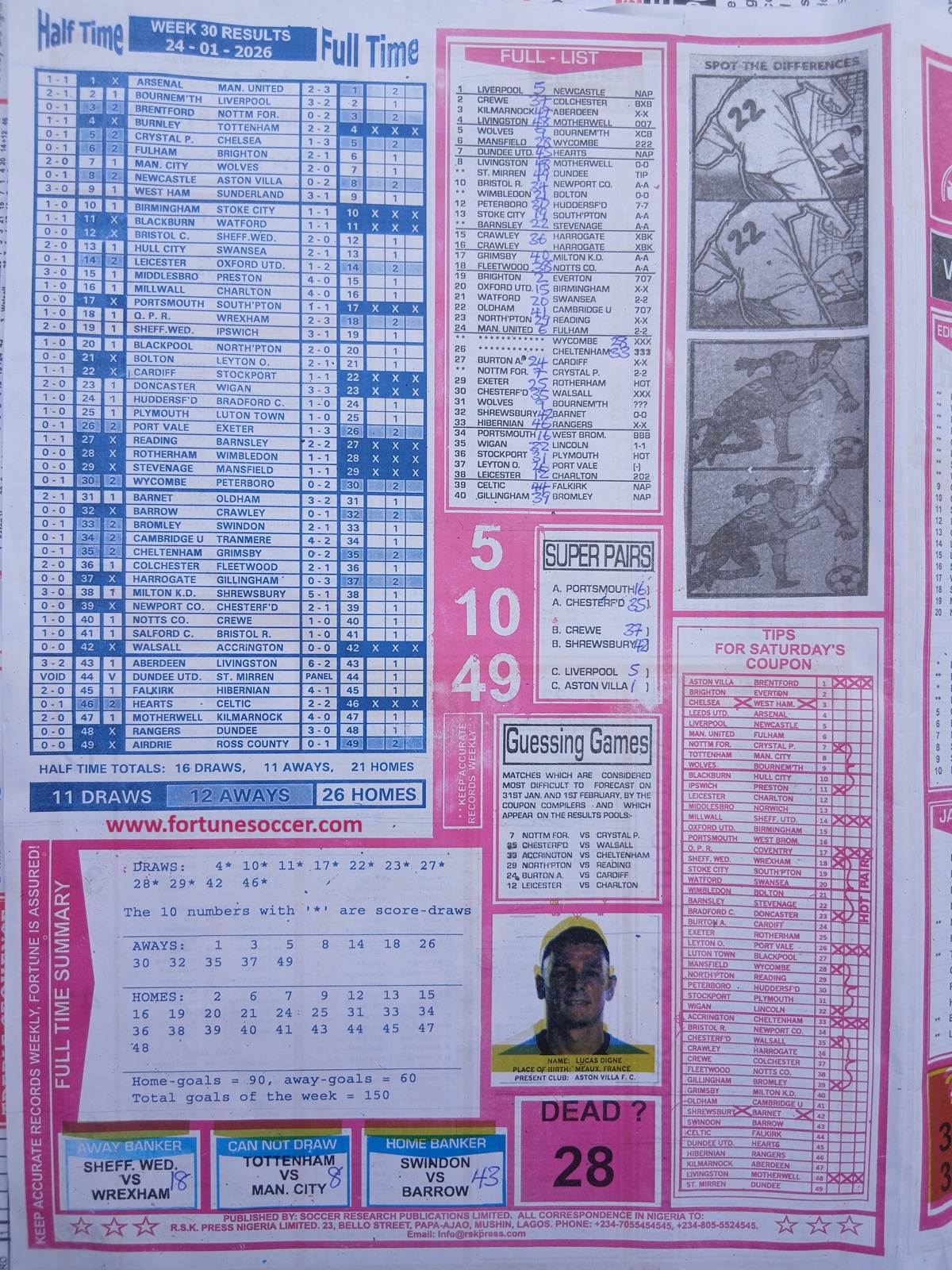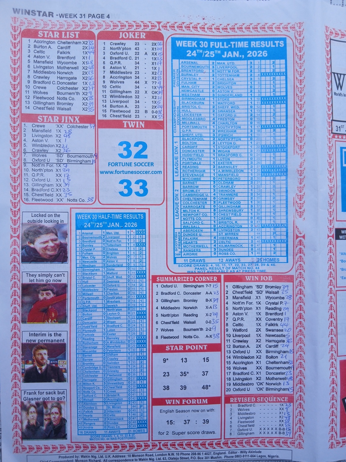 Week 31 RSK Papers 2026: Soccer, Bob Morton, Capital, WinStar, BigWin