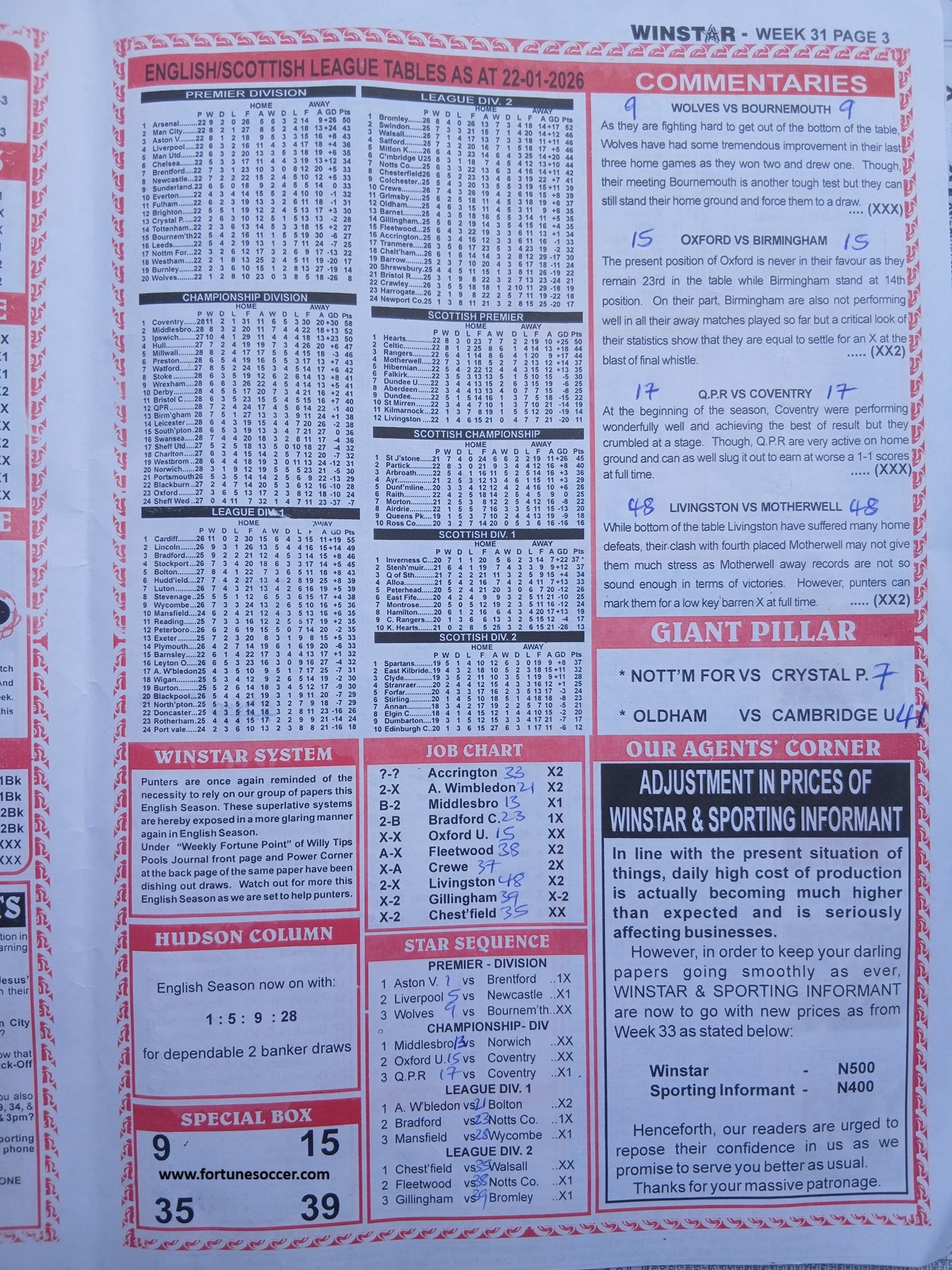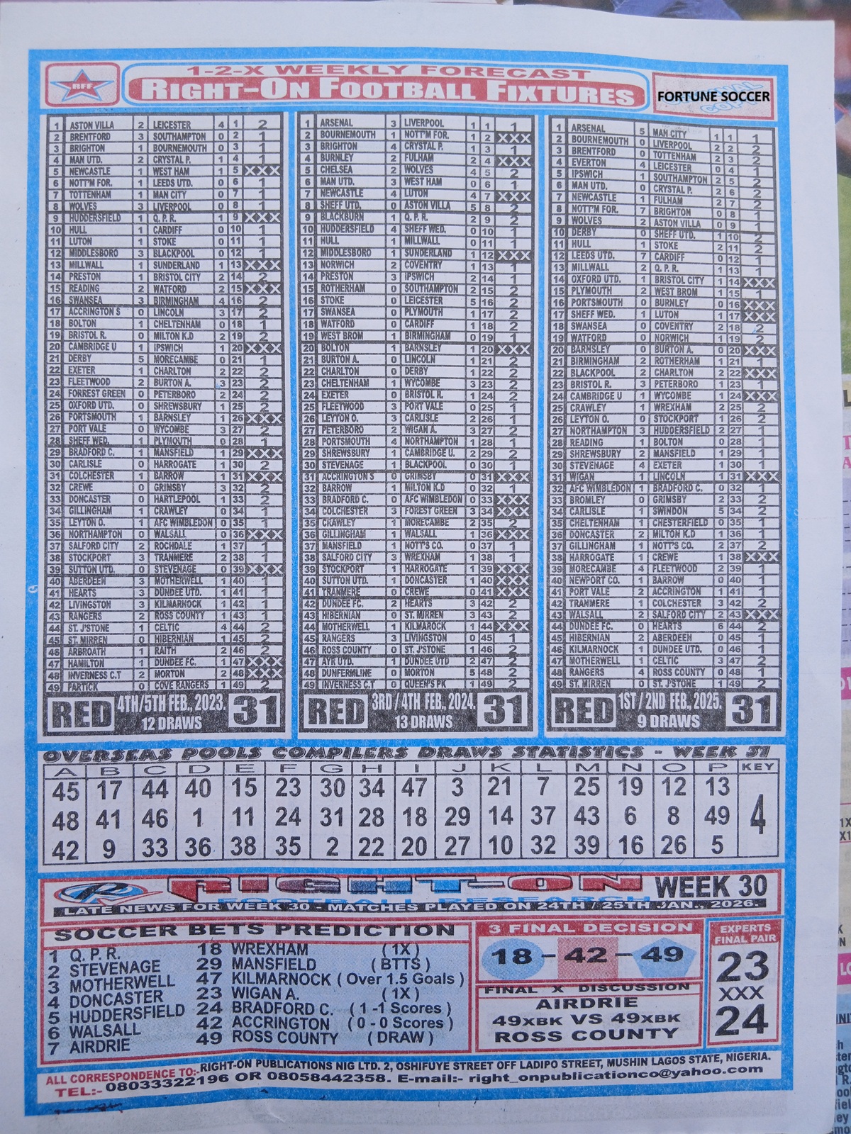 We also provide the best of Nigeria’s leading football pool forecasting papers, including WinStar, BigWin, Dream International Research, Weekly 1.X.2 Matrix, and pool advance fixtures such as Special Advance Fixtures and Fortune Advanced Fixtures.