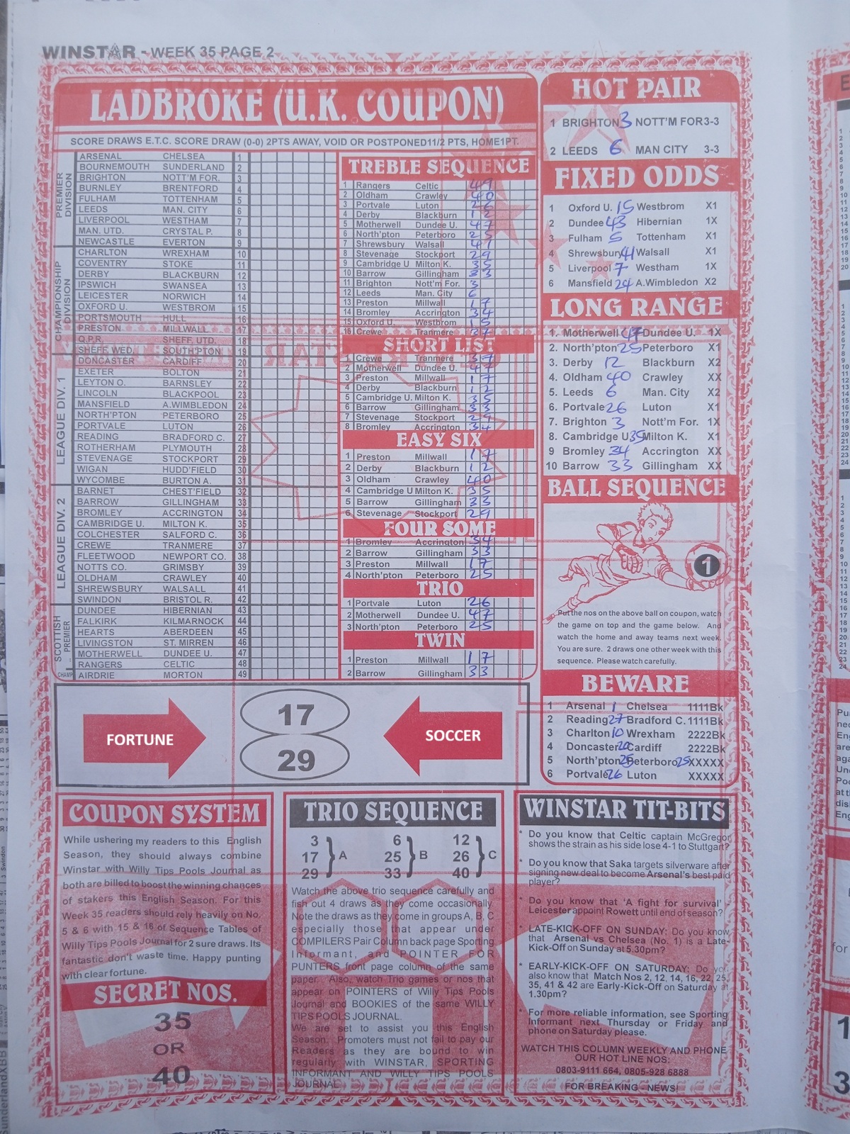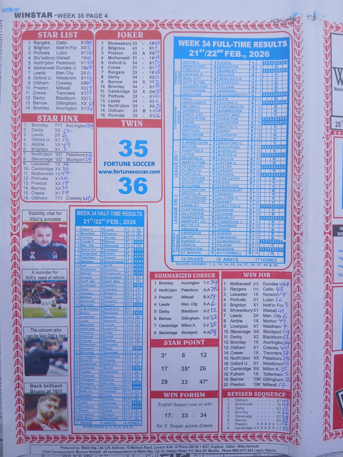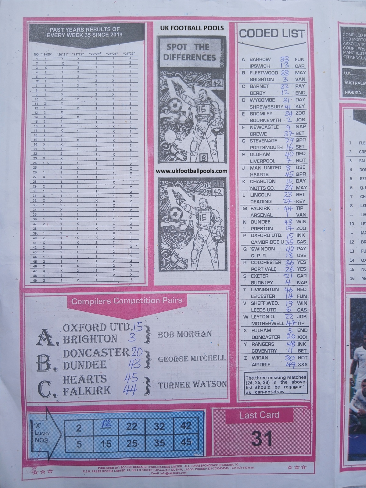 We also provide the best of Nigeria’s leading football pool forecasting papers, including WinStar, BigWin, Dream International Research, Weekly 1.X.2 Matrix, and pool advance fixtures such as Special Advance Fixtures and Fortune Advanced Fixtures.