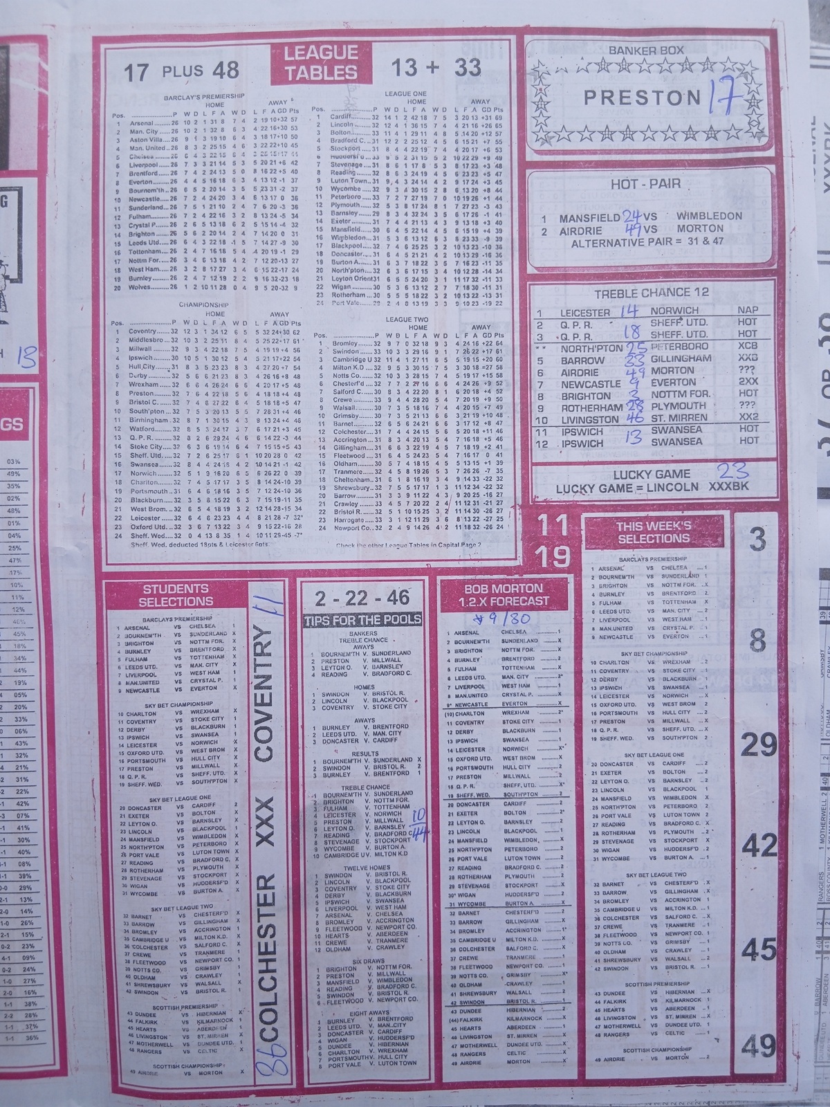 SPECIAL ADVANCE AND RIGHT ON FOOTBALL FIXTURES