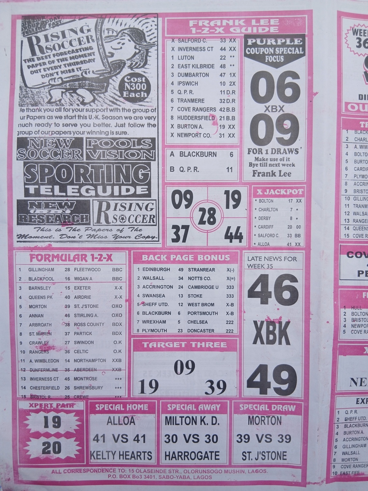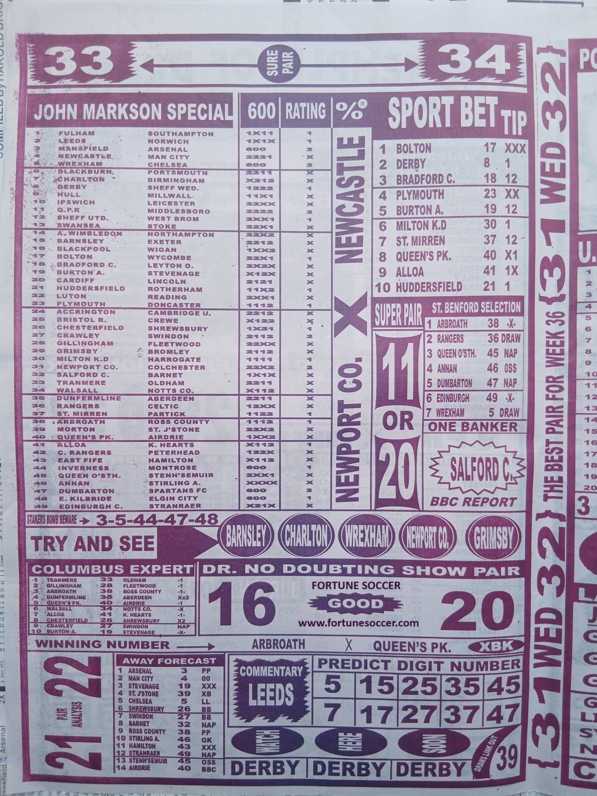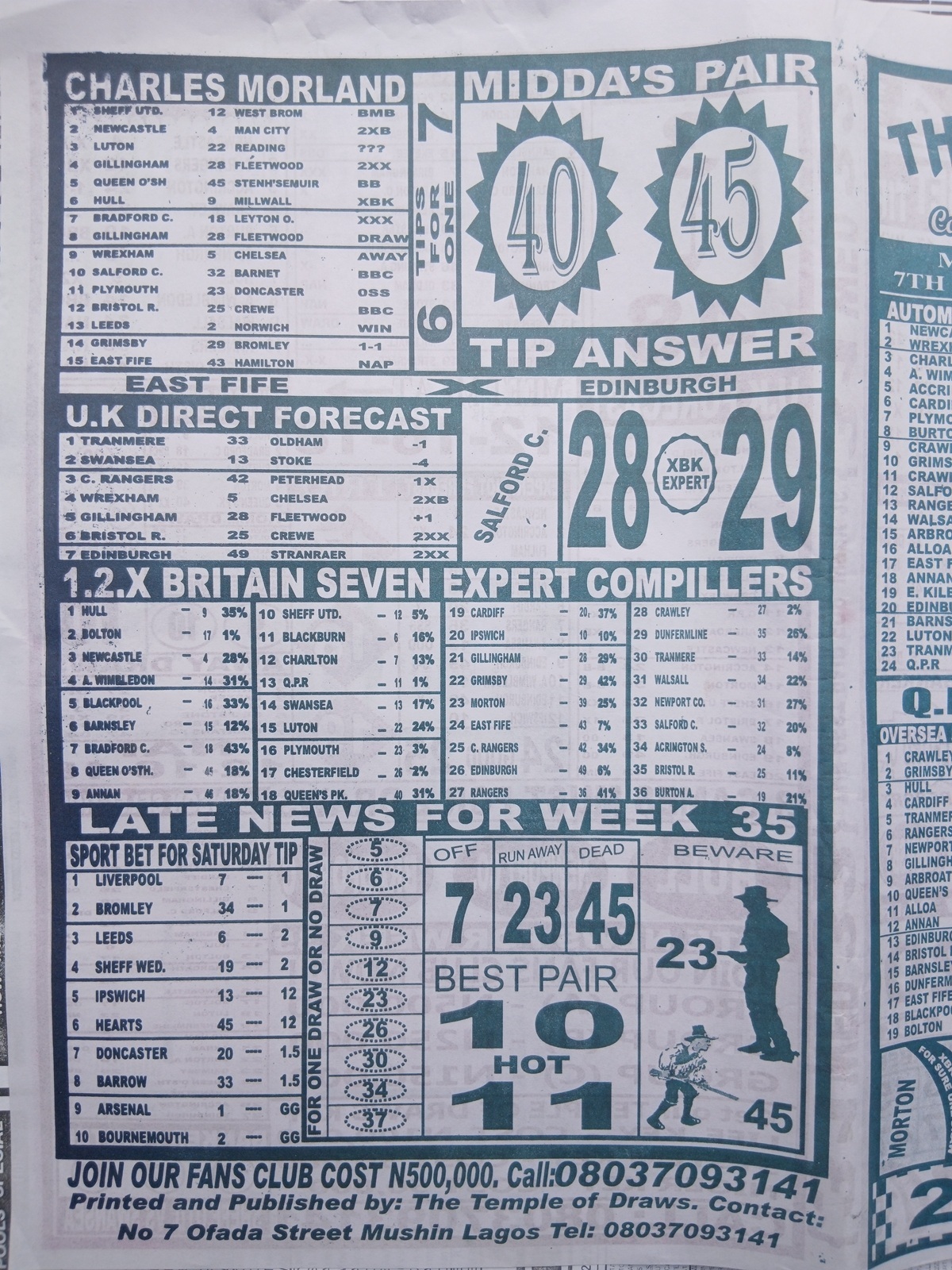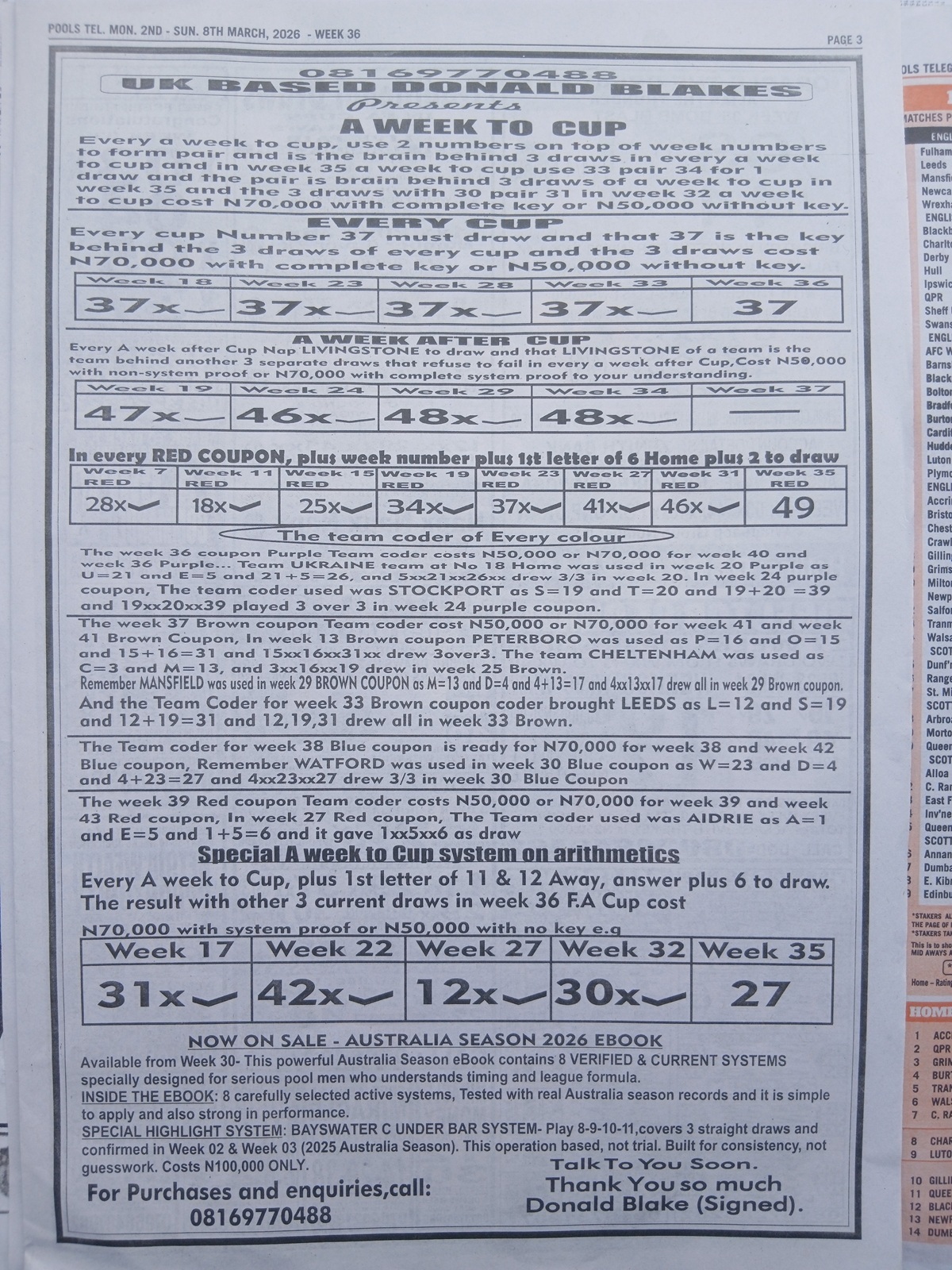 We publish the world’s leading weekend football pool forecasting papers, poised to boost your winning chances. Apart from CBK papers, we also publish late news papers like Dream International Research, Bigwin Soccer Temple of Draws, and Mirror Punters Guide. Week 36 late news pool paper 2026