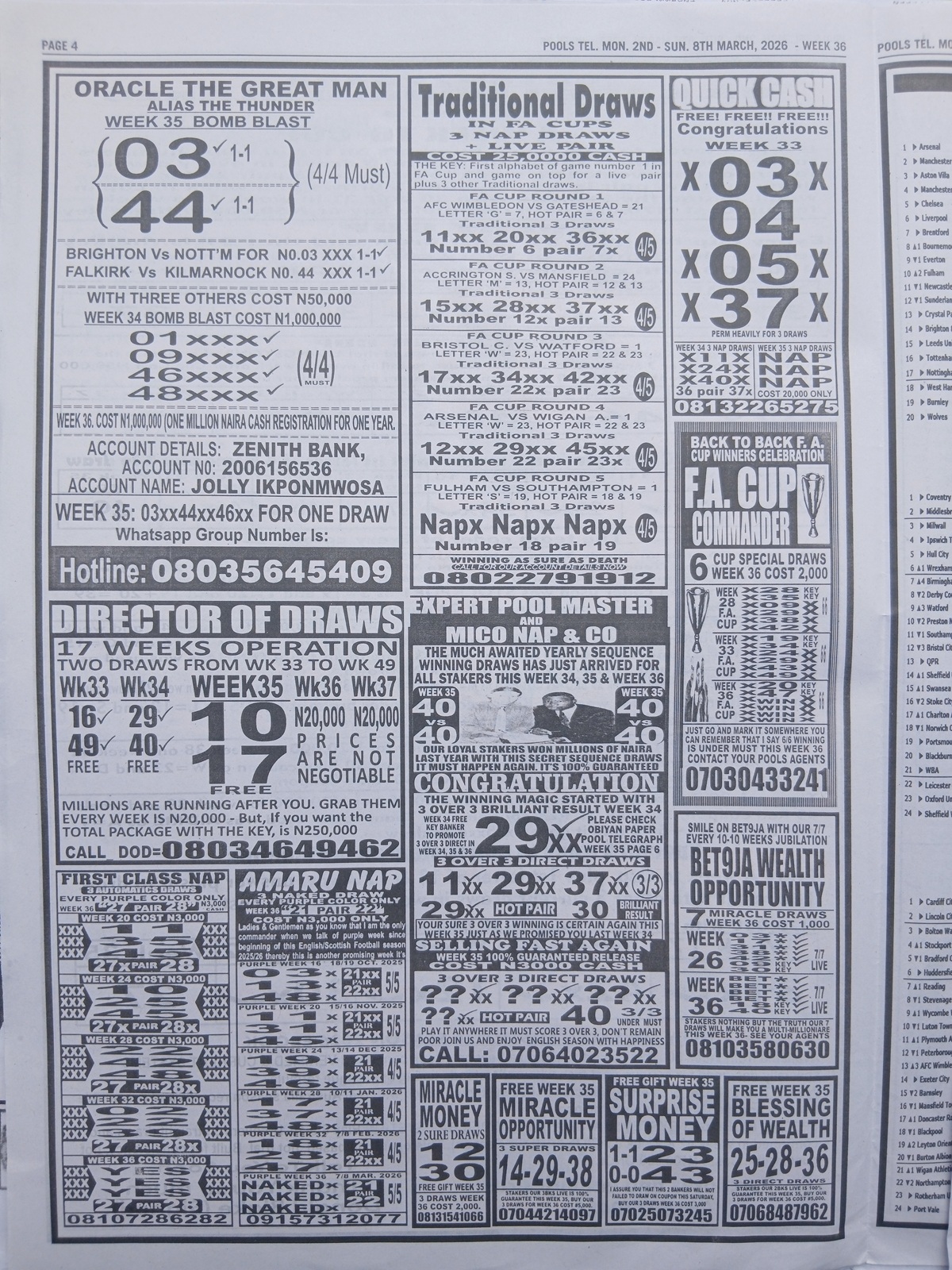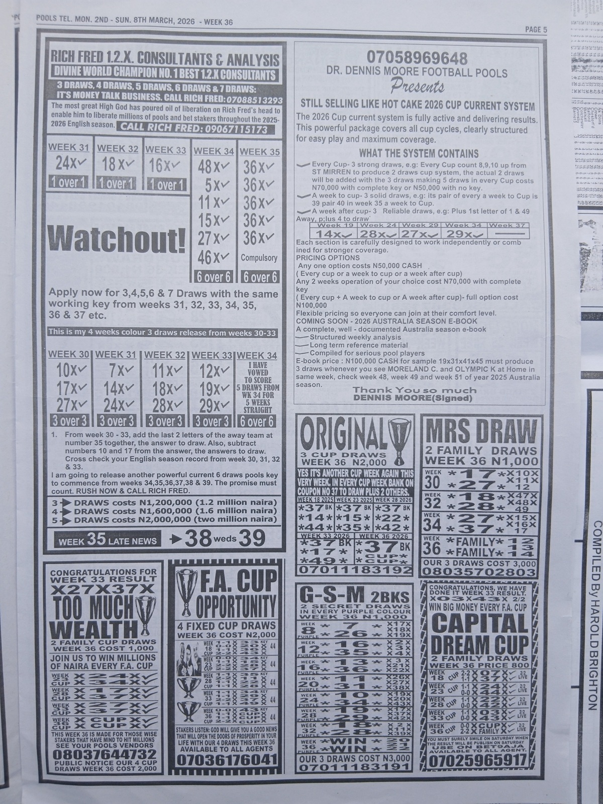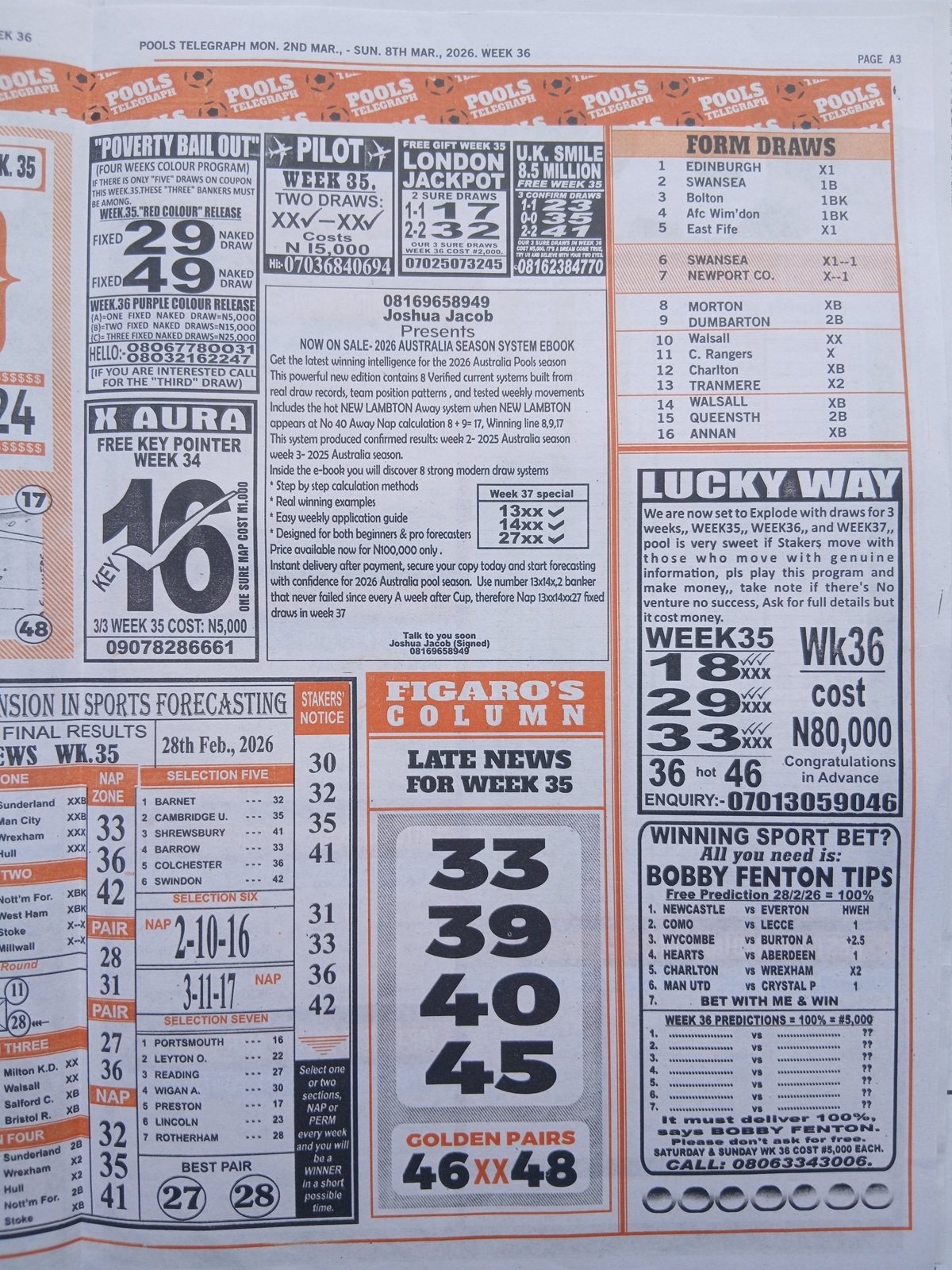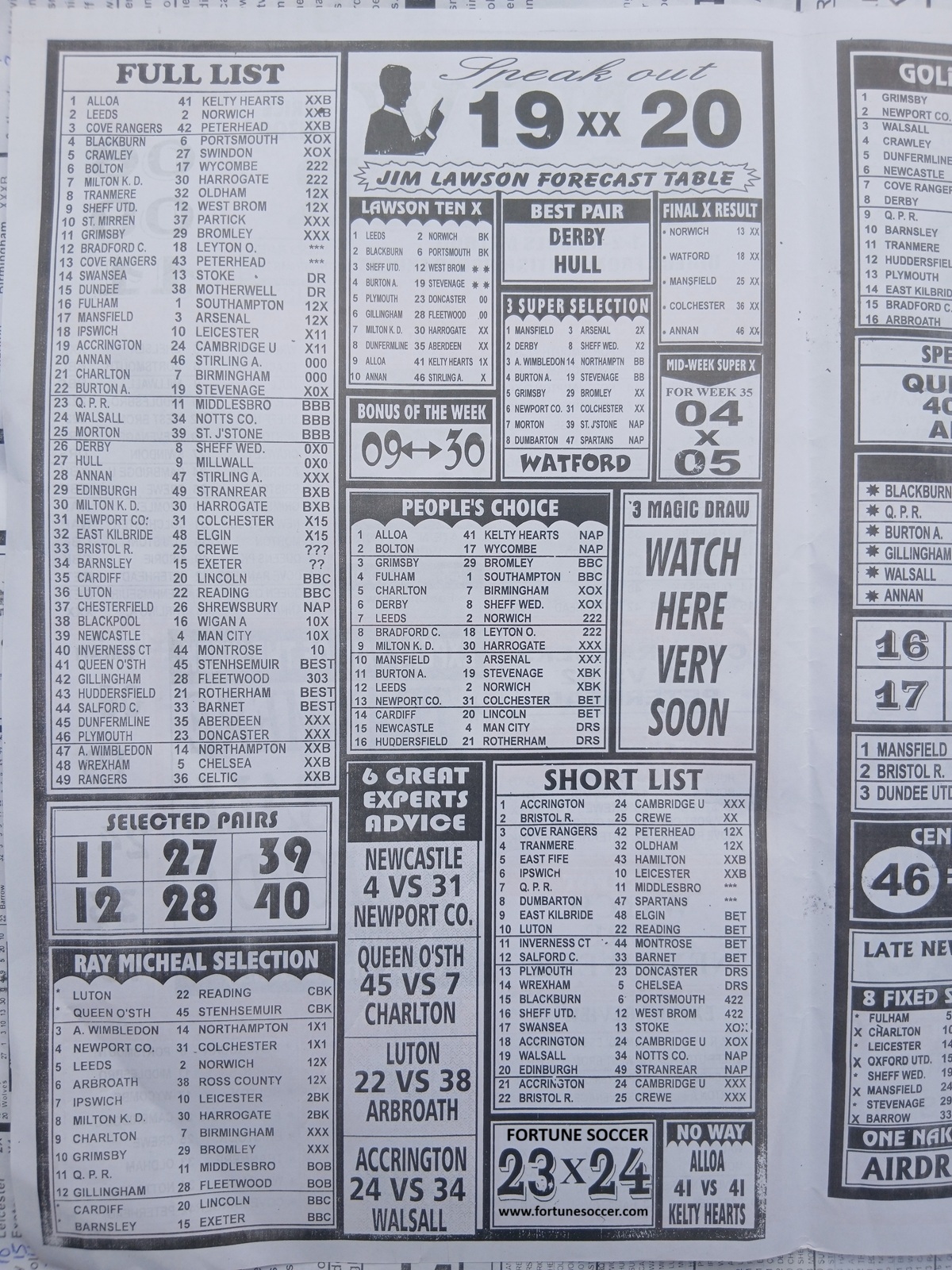 We publish the world’s leading weekend football pool forecasting papers, poised to boost your winning chances. Apart from CBK papers, we also publish late news papers like Dream International Research, Bigwin Soccer Temple of Draws, and Mirror Punters Guide. Week 36 late news pool paper 2026