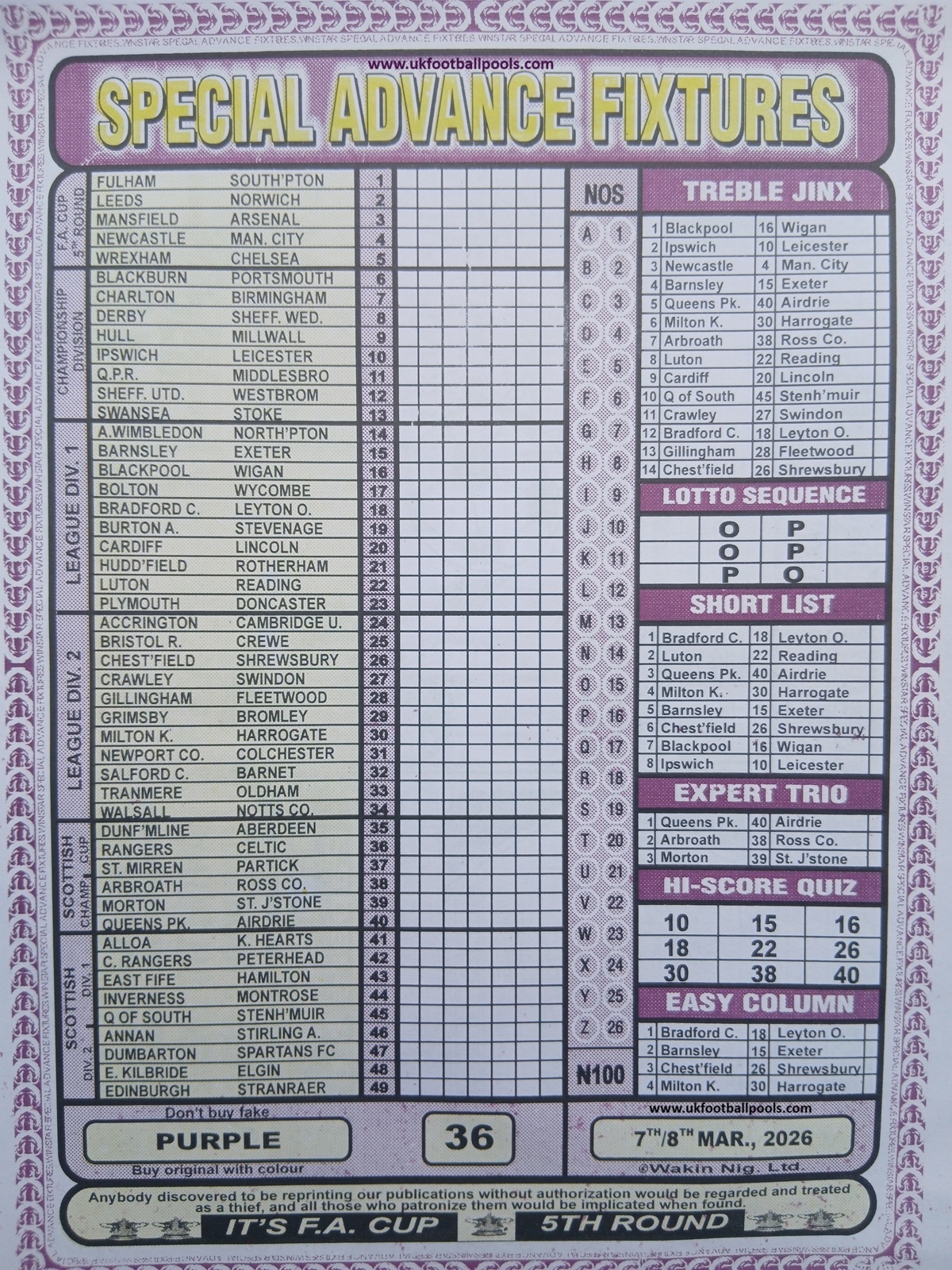 We also provide the best of Nigeria’s leading football pool forecasting papers, including WinStar, BigWin, Dream International Research, Weekly 1.X.2 Matrix, and pool advance fixtures such as Special Advance Fixtures and Fortune Advanced Fixtures.