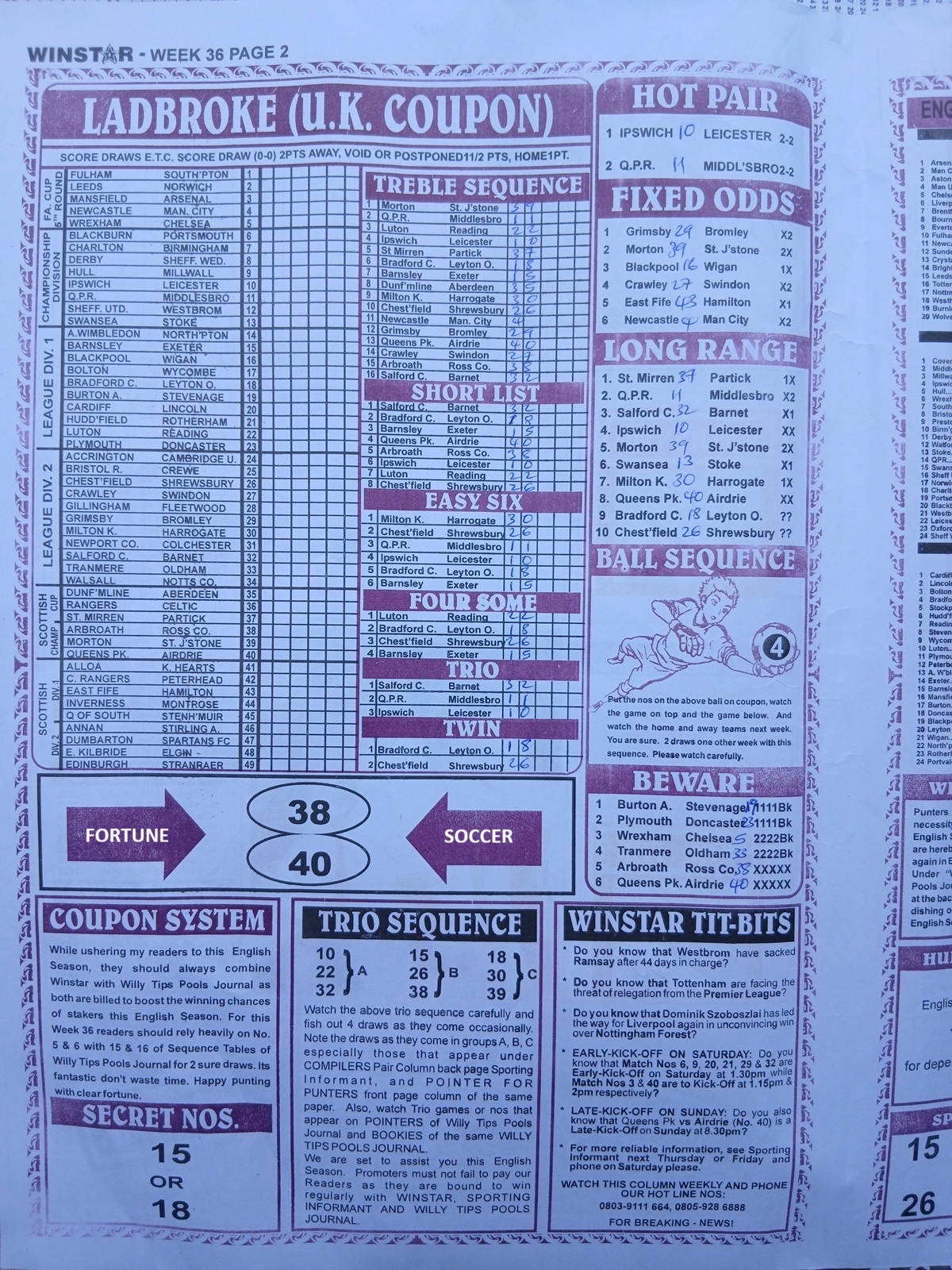 SPECIAL ADVANCE AND RIGHT ON FOOTBALL FIXTURES