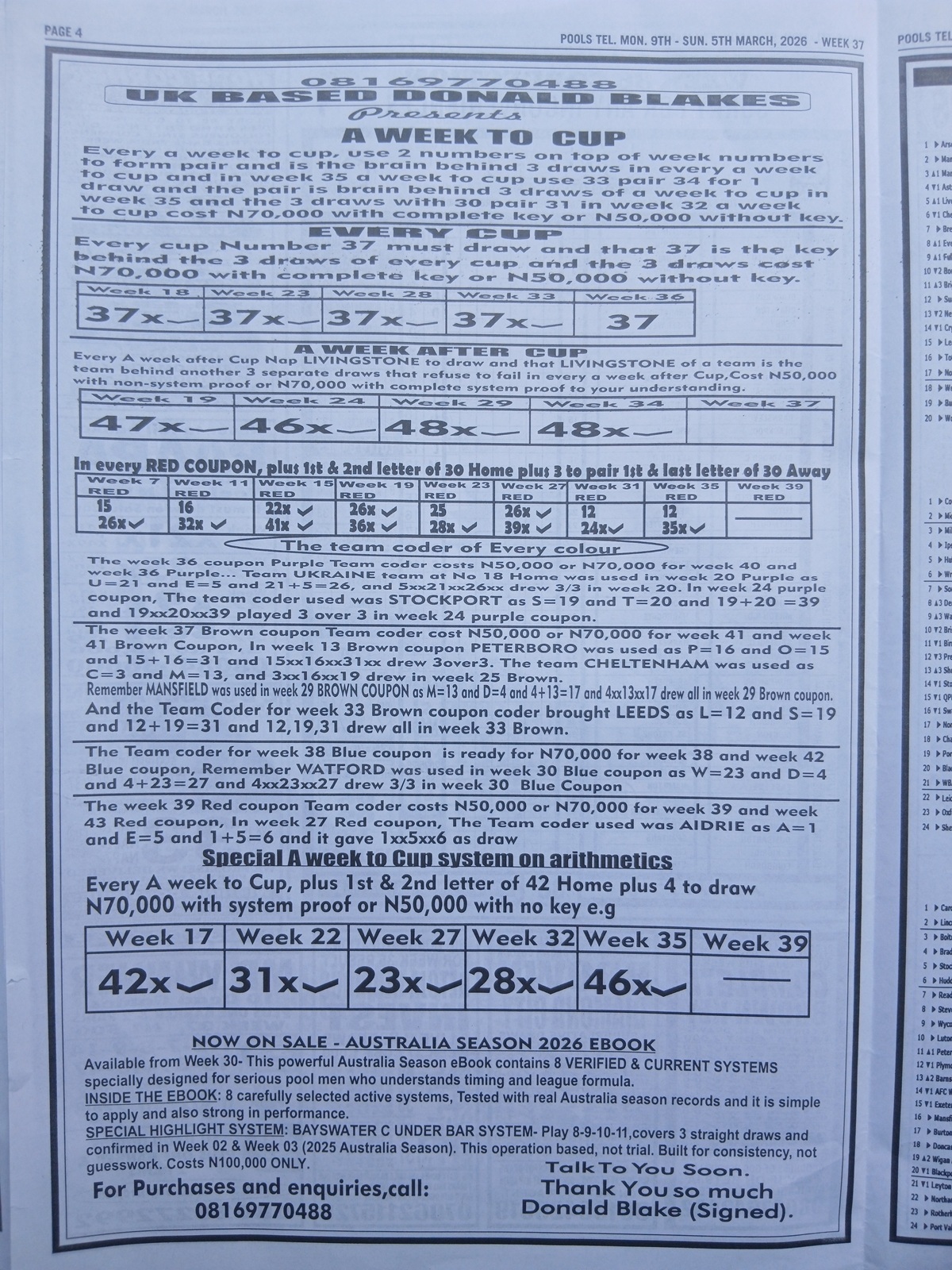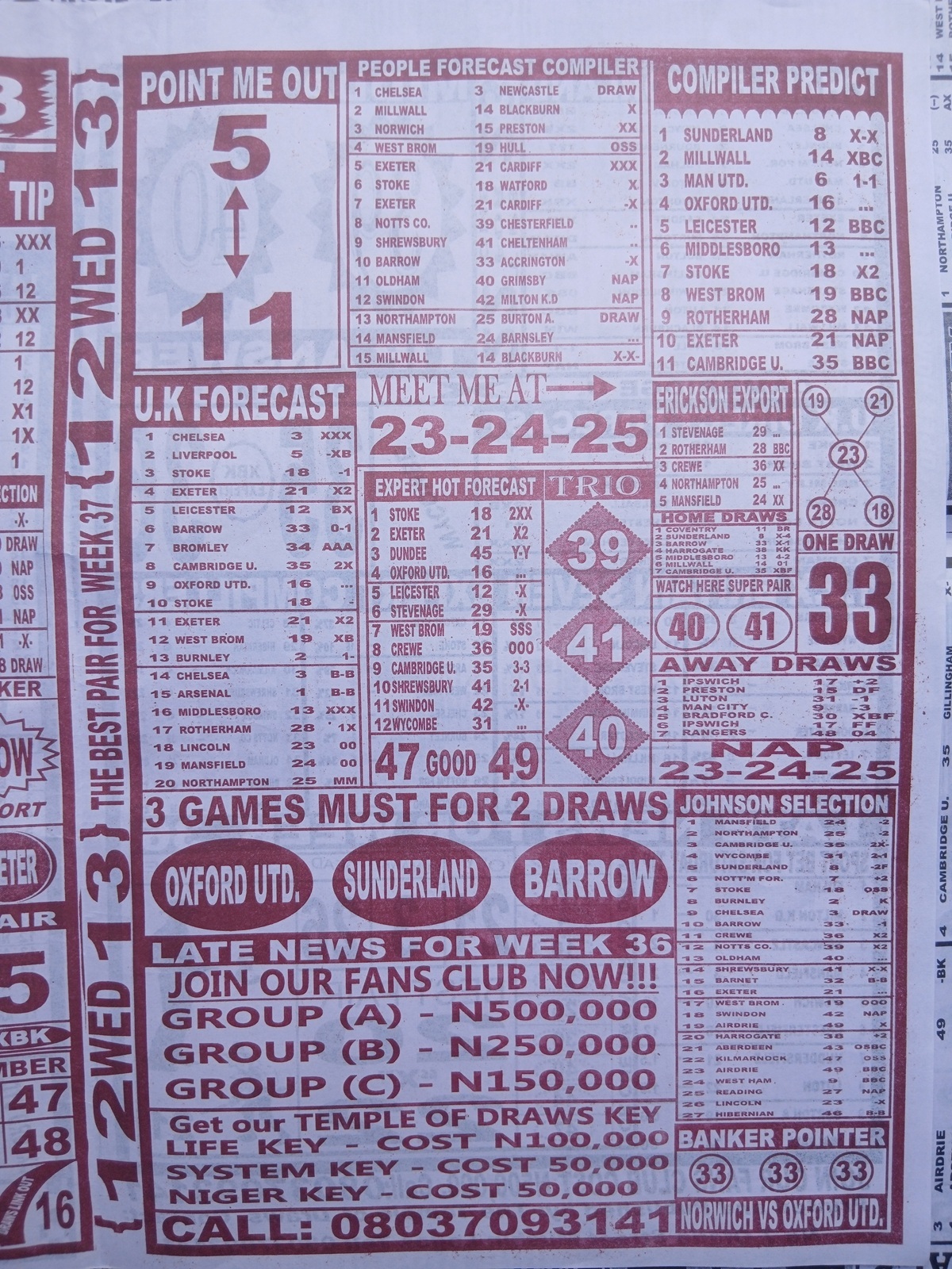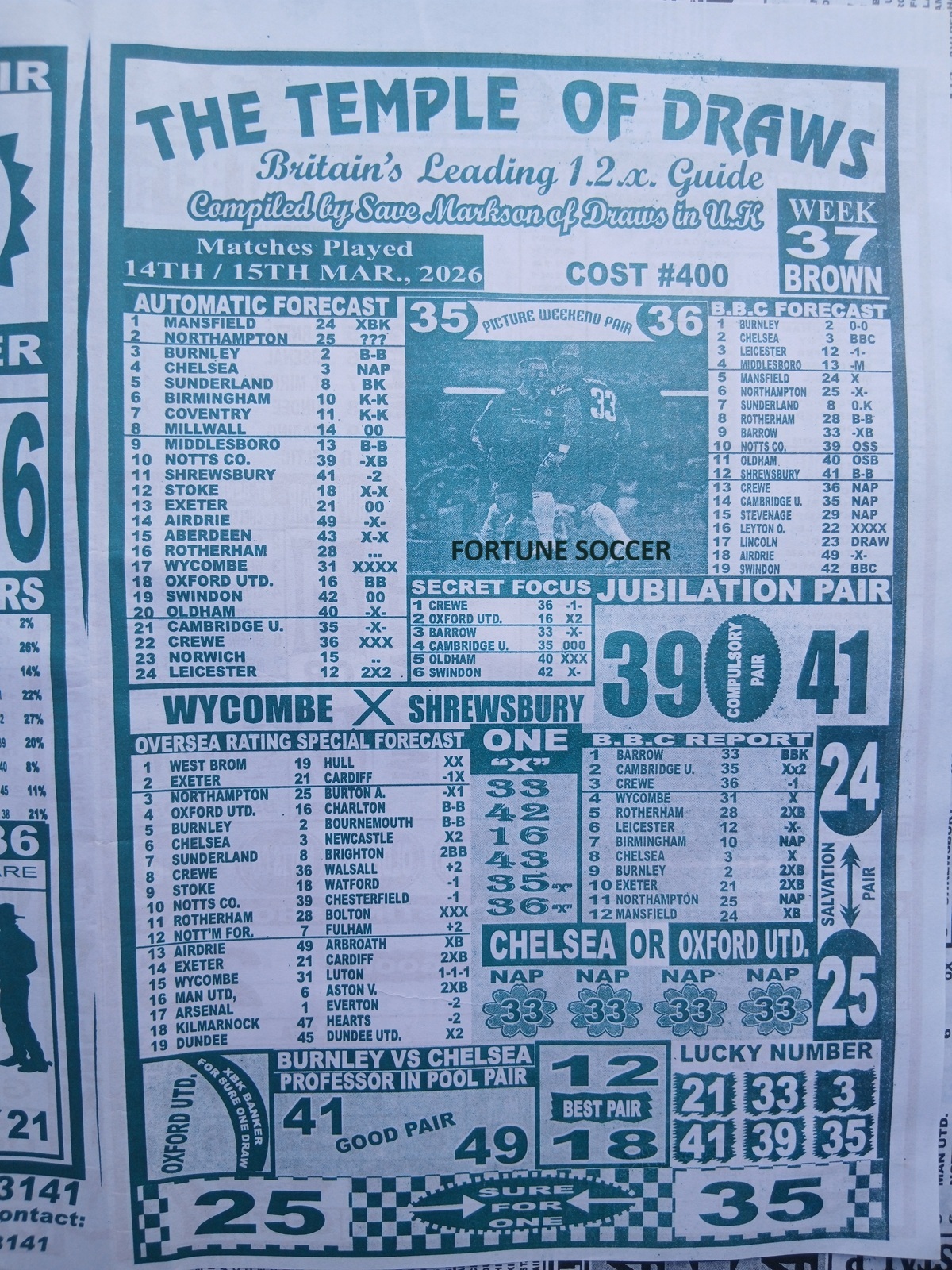 We publish the world’s leading weekend football pool forecasting papers, poised to boost your winning chances. Apart from CBK papers, we also publish late news papers like Dream International Research, Bigwin Soccer Temple of Draws, and Mirror Punters Guide. Week 37 late news pool paper 2026