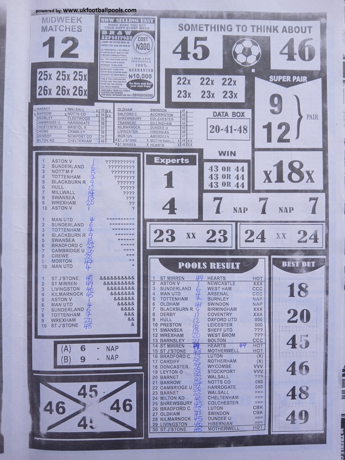We publish the world’s leading weekend football pool forecasting papers poised to boost your winning chances. Apart from CBK papers we also publish late news papers like Dream International Research and Bigwin Soccer. Week 7 late news pool paper 2025