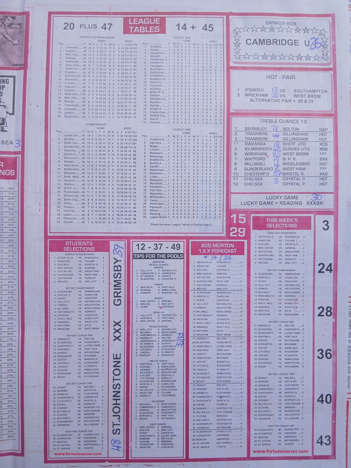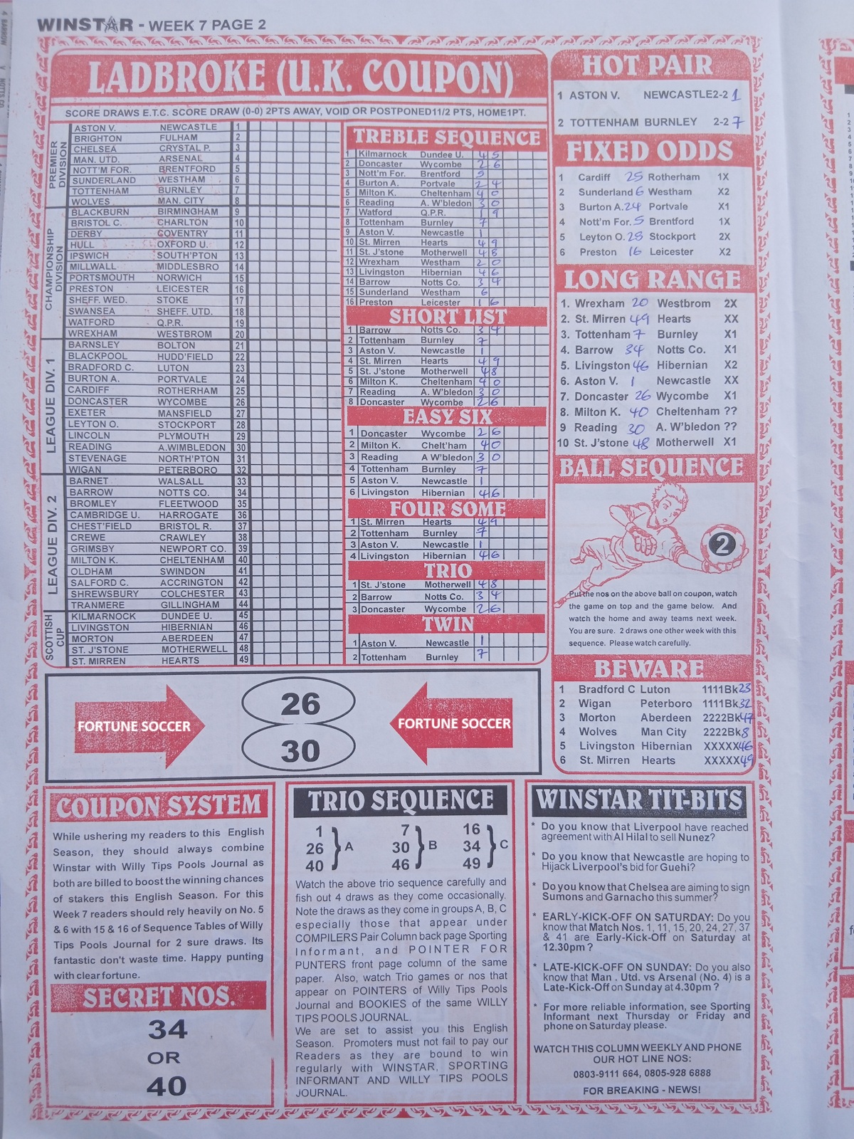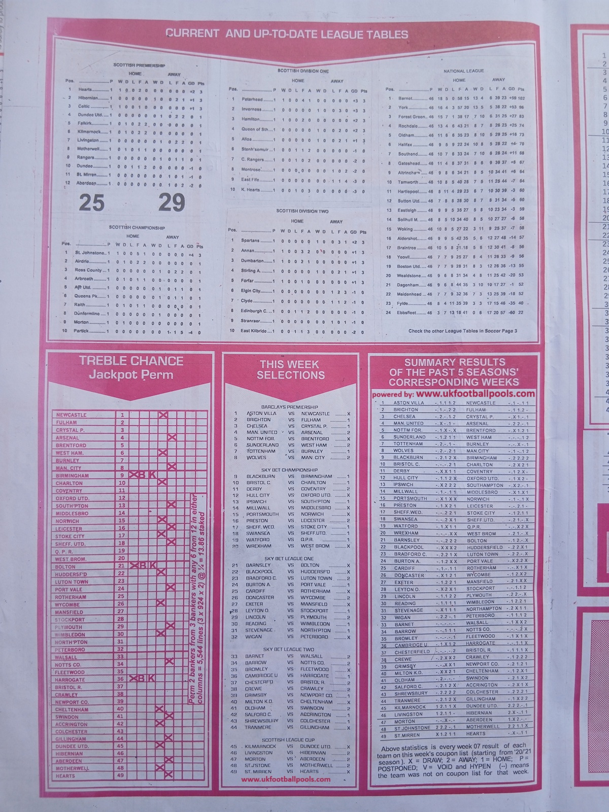 SPECIAL ADVANCE AND RIGHT ON FOOTBALL FIXTURES