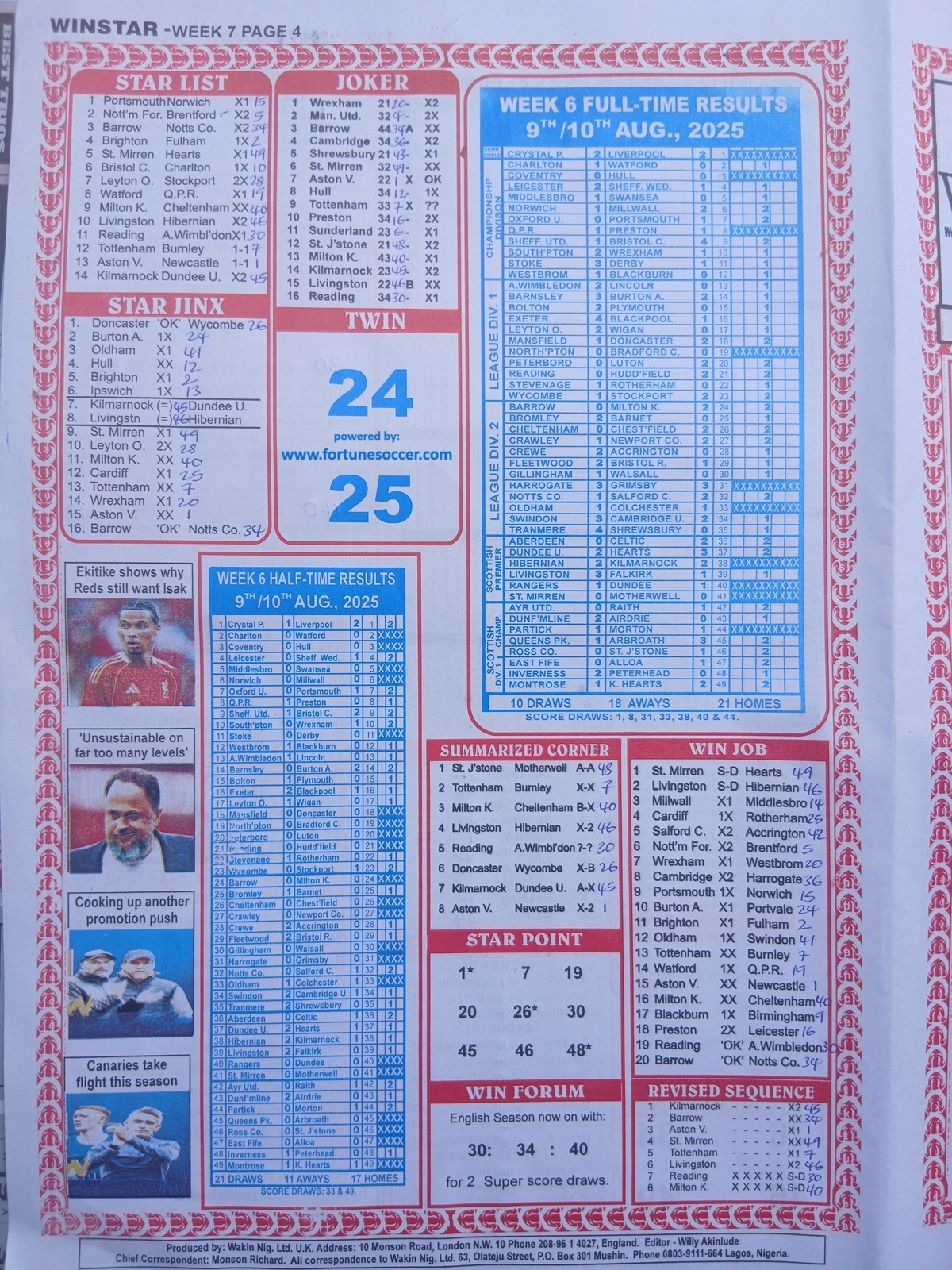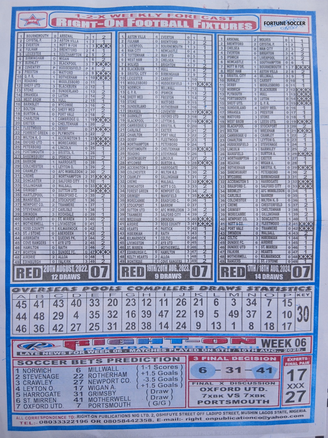 We also provide the best of Nigeria’s leading football pool forecasting papers, including WinStar, BigWin, Dream International Research, Weekly 1.X.2 Matrix, and pool advance fixtures such as Special Advance Fixtures and Fortune Advanced Fixtures.