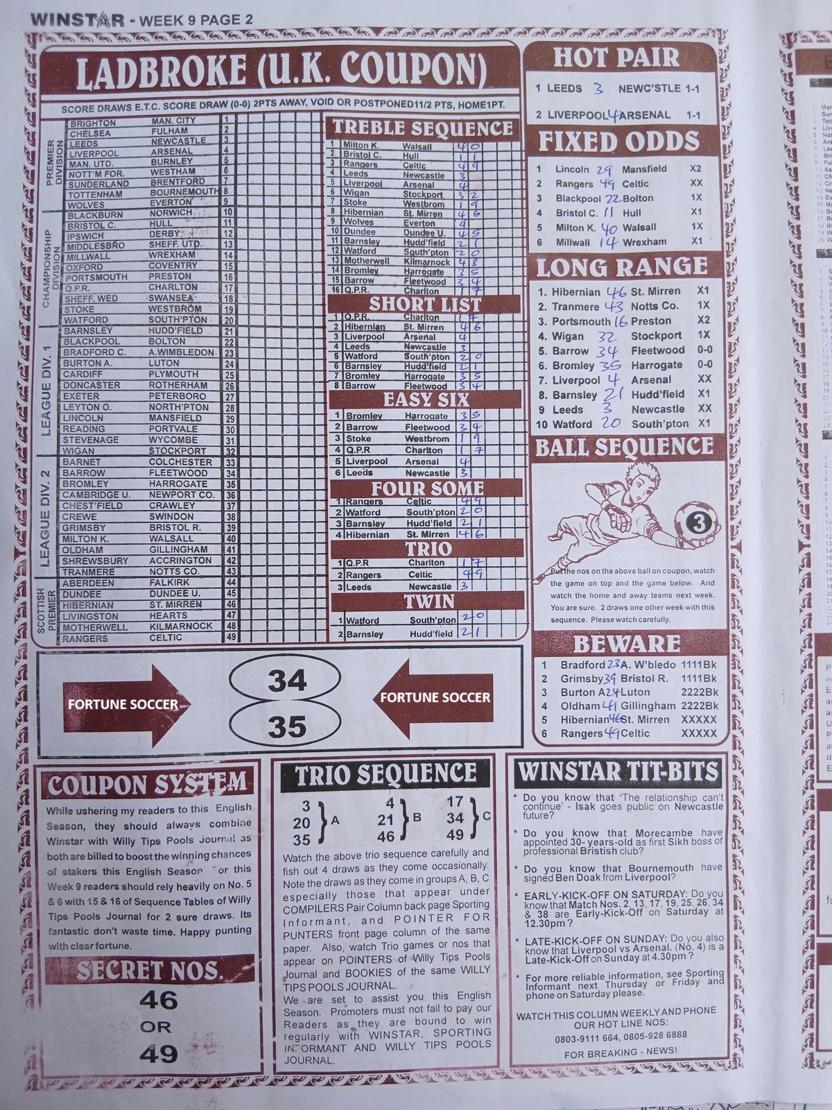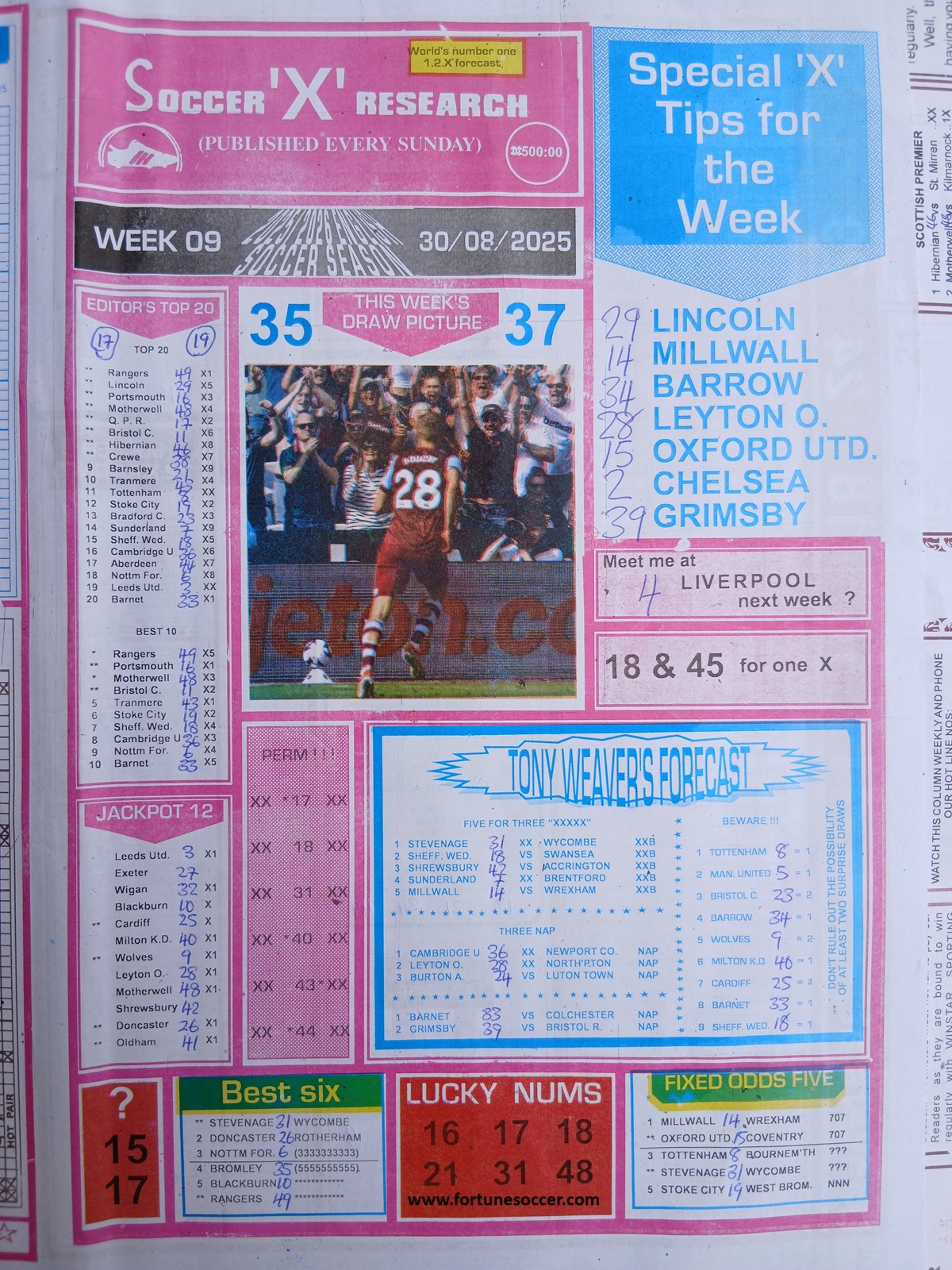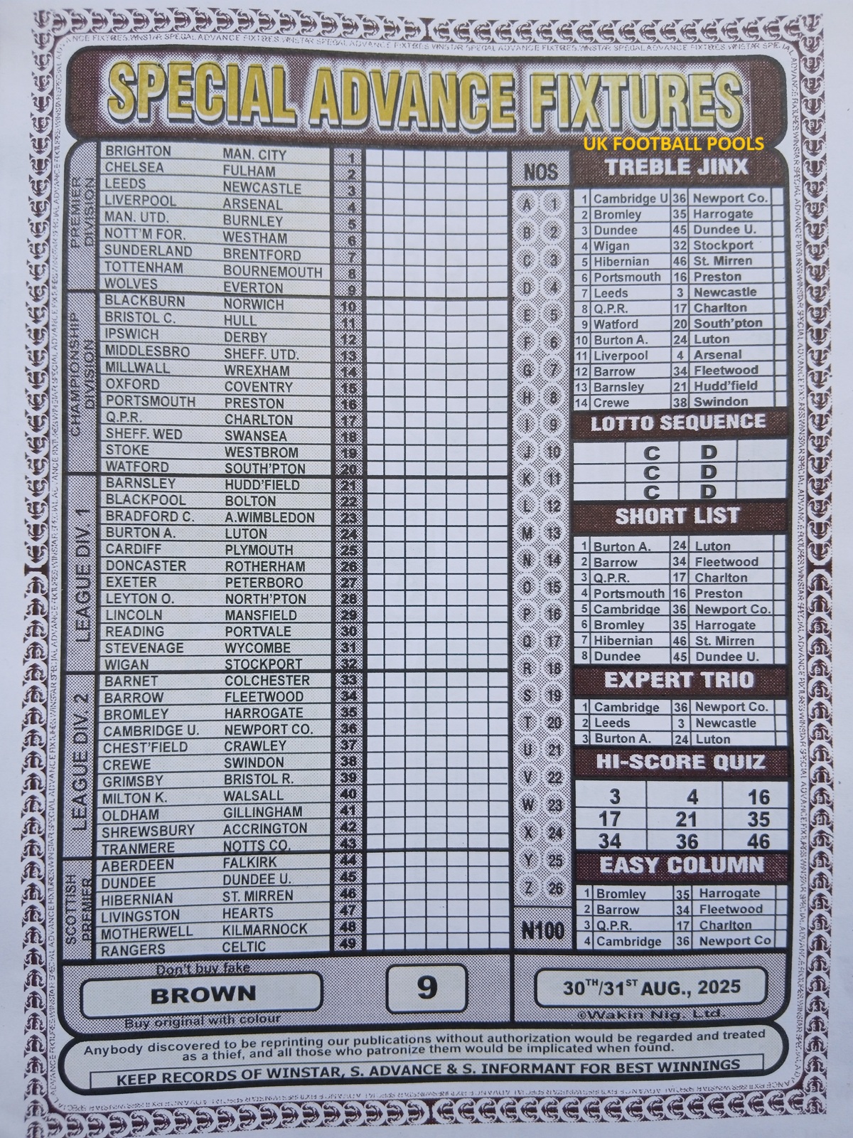 SPECIAL ADVANCE AND RIGHT ON FOOTBALL FIXTURES