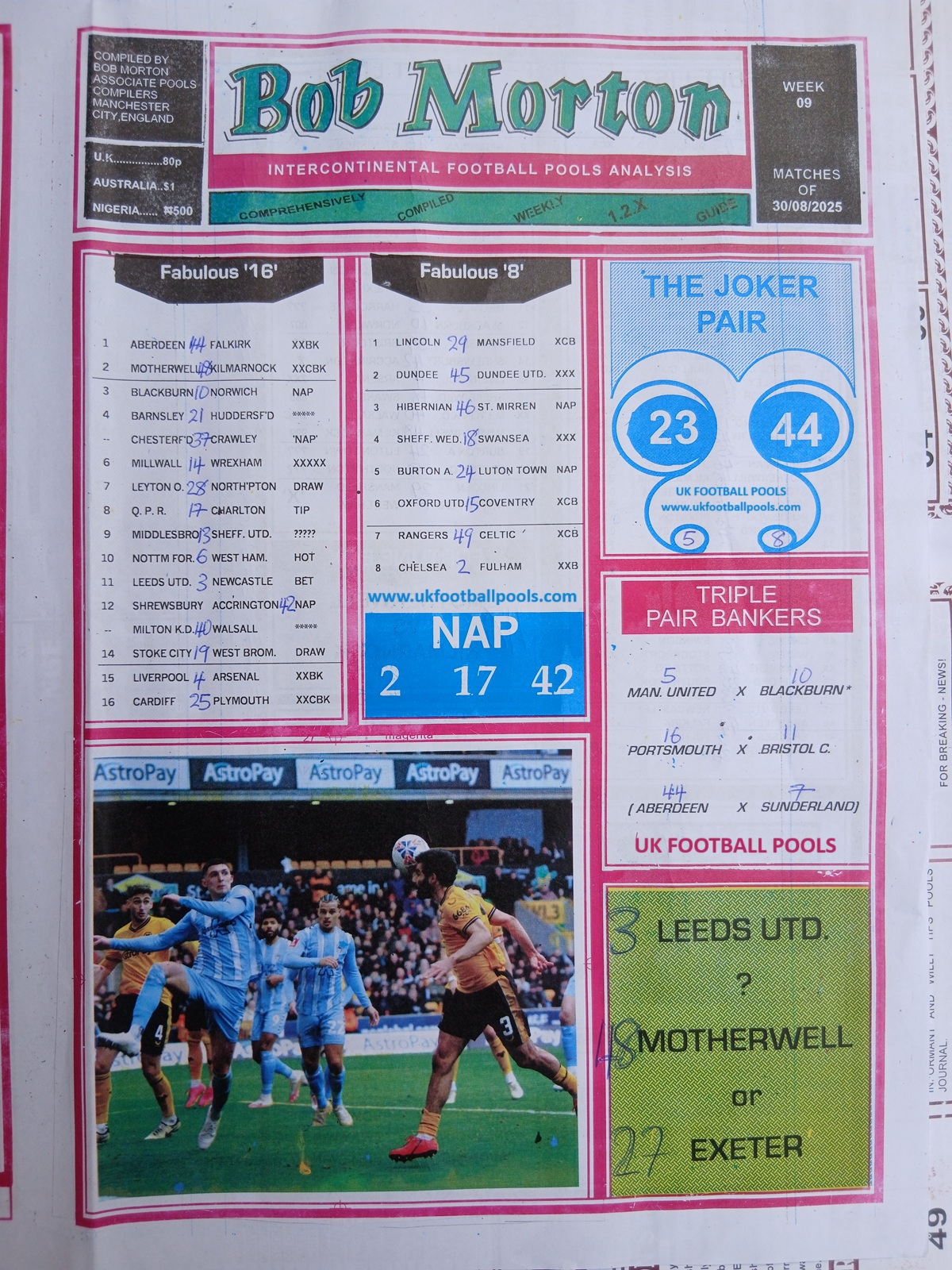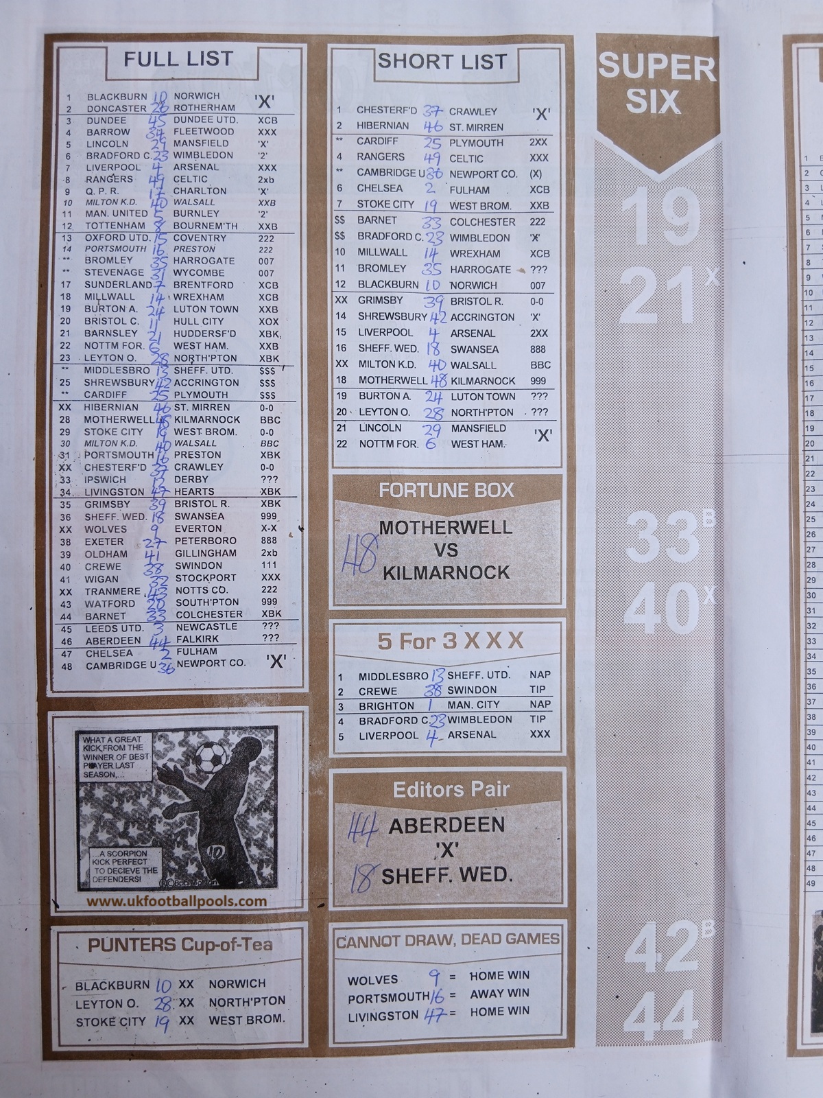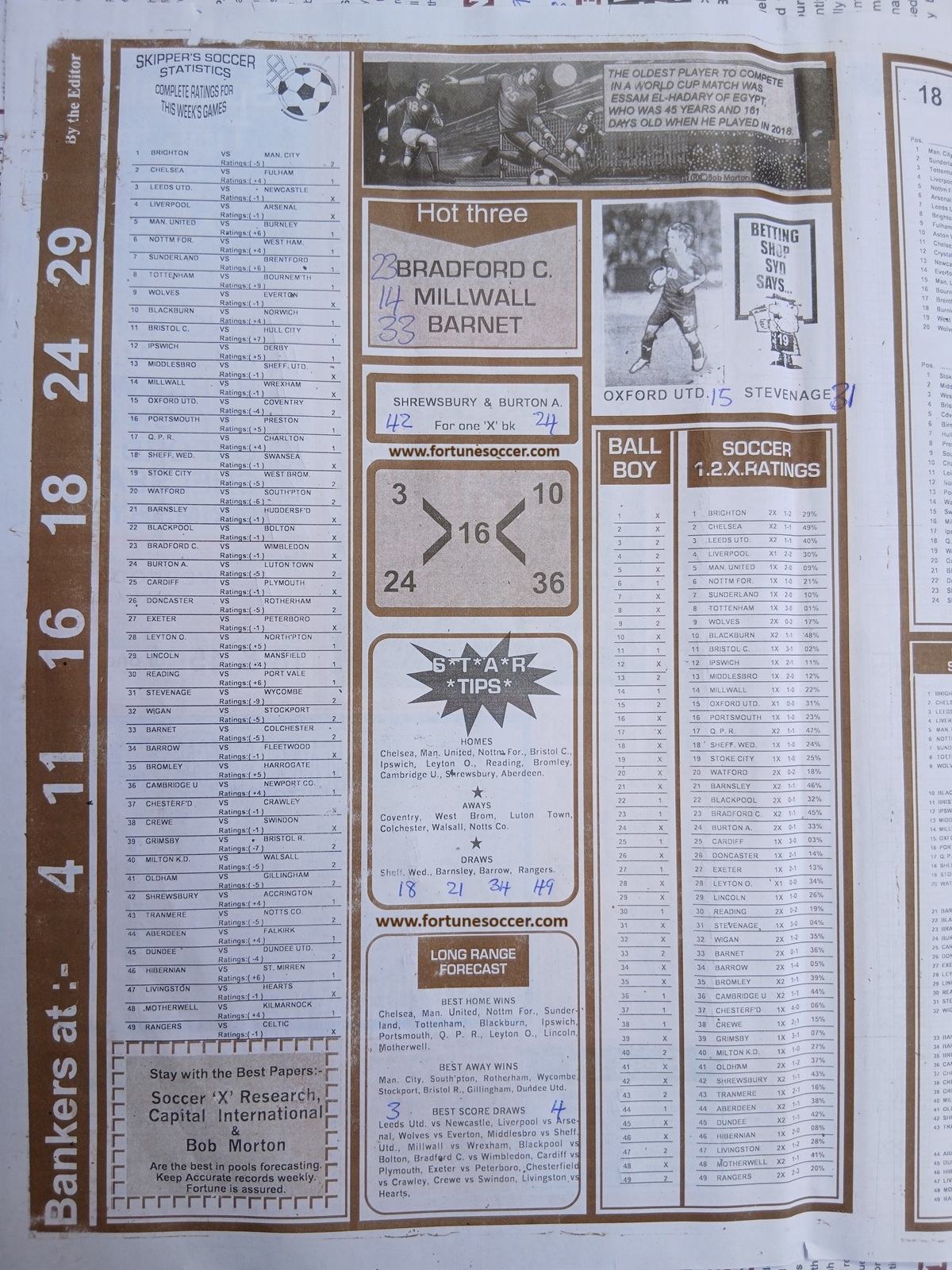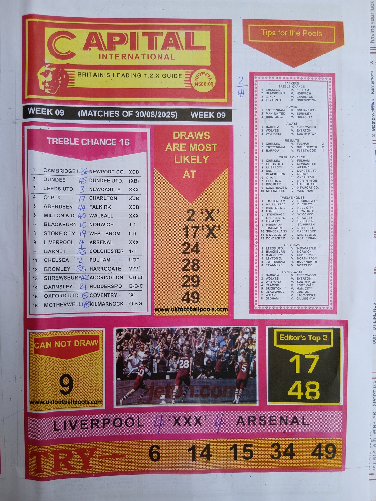 SPECIAL ADVANCE AND RIGHT ON FOOTBALL FIXTURES