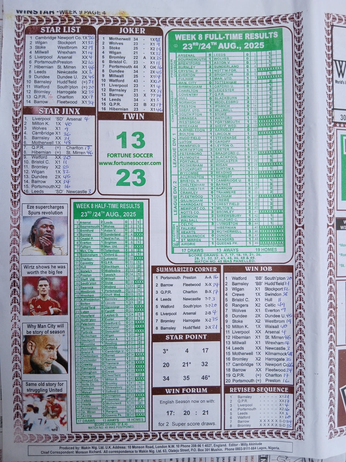 We also provide the best of Nigeria’s leading football pool forecasting papers, including WinStar, BigWin, Dream International Research, Weekly 1.X.2 Matrix, and pool advance fixtures such as Special Advance Fixtures and Fortune Advanced Fixtures.